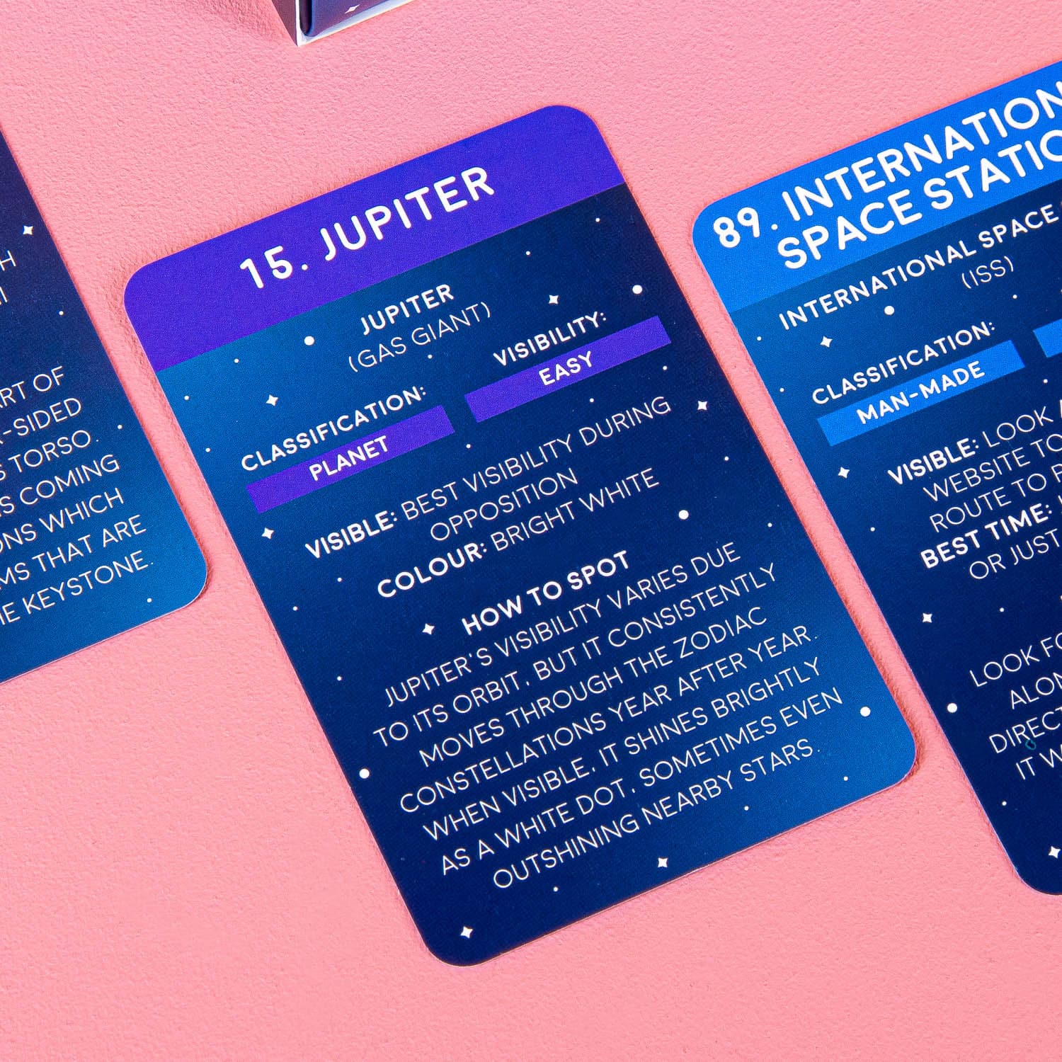 Altijd al astronaut willen worden, maar te lui om de opleiding te doen? De 100 Wonders of Night Sky van Gift Republic zijn jouw shortcut naar kosmische kennis. Elk kaartje onthult een wonder van de nachtelijke hemel, van nevels die eruitzien als kattenogen tot sterrenstelsels die onze Melkweg als een snack zouden opeten.