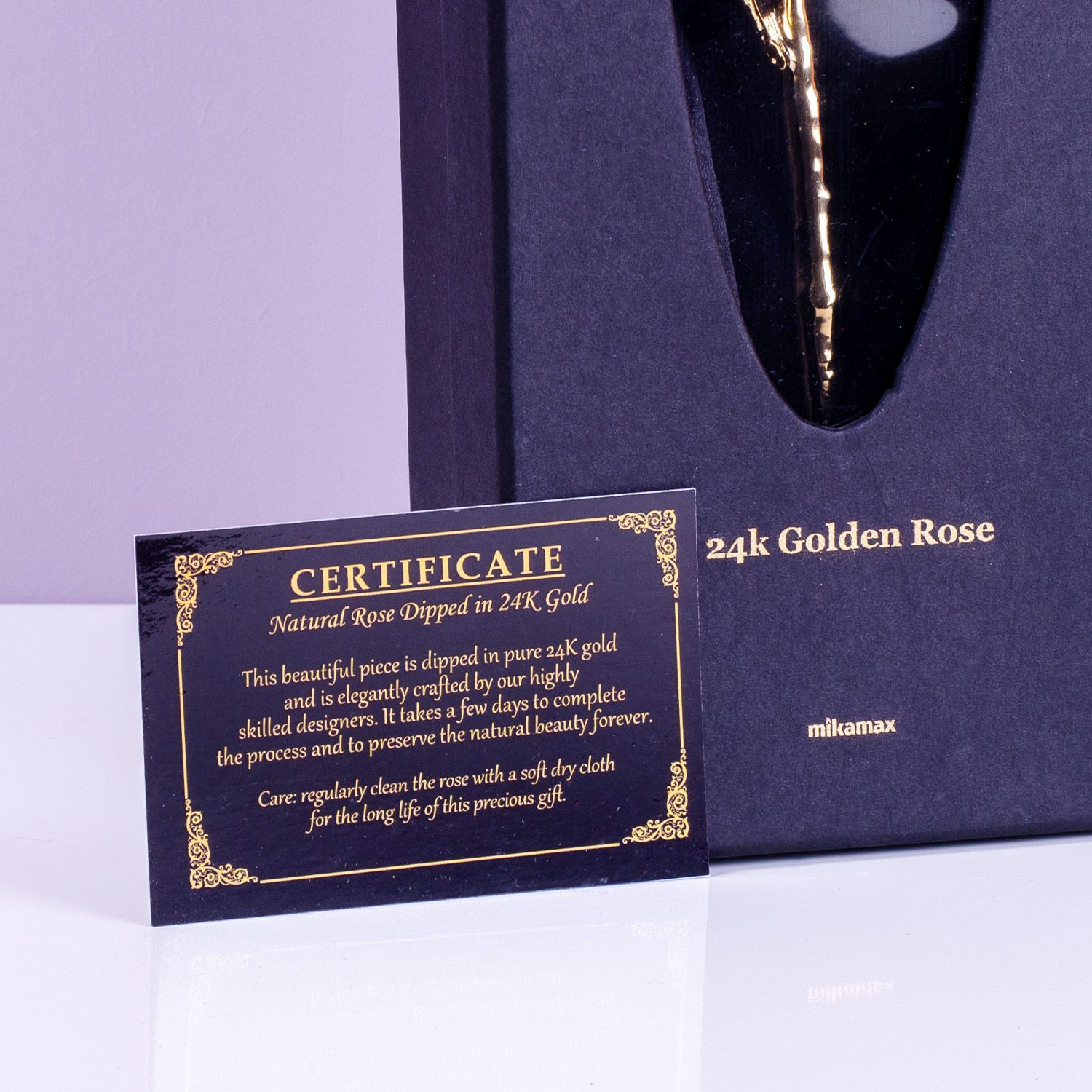 Wil je deze Valentijnsdag écht indruk maken op je liefje? Tover dan de 24 karaat gouden roos van MikaMax tevoorschijn. Een echte roos, die is gedipt in 24 karaat goud. Hierdoor blijft de roos jarenlang mooi en kunnen jullie er elke dag voor gebruiken. Zet hem in een mooi vaasje – zonder water – of zet de roos in de luxe geschenkverpakking op een mooi plekje. Wedden dat je punten scoort met dit product?