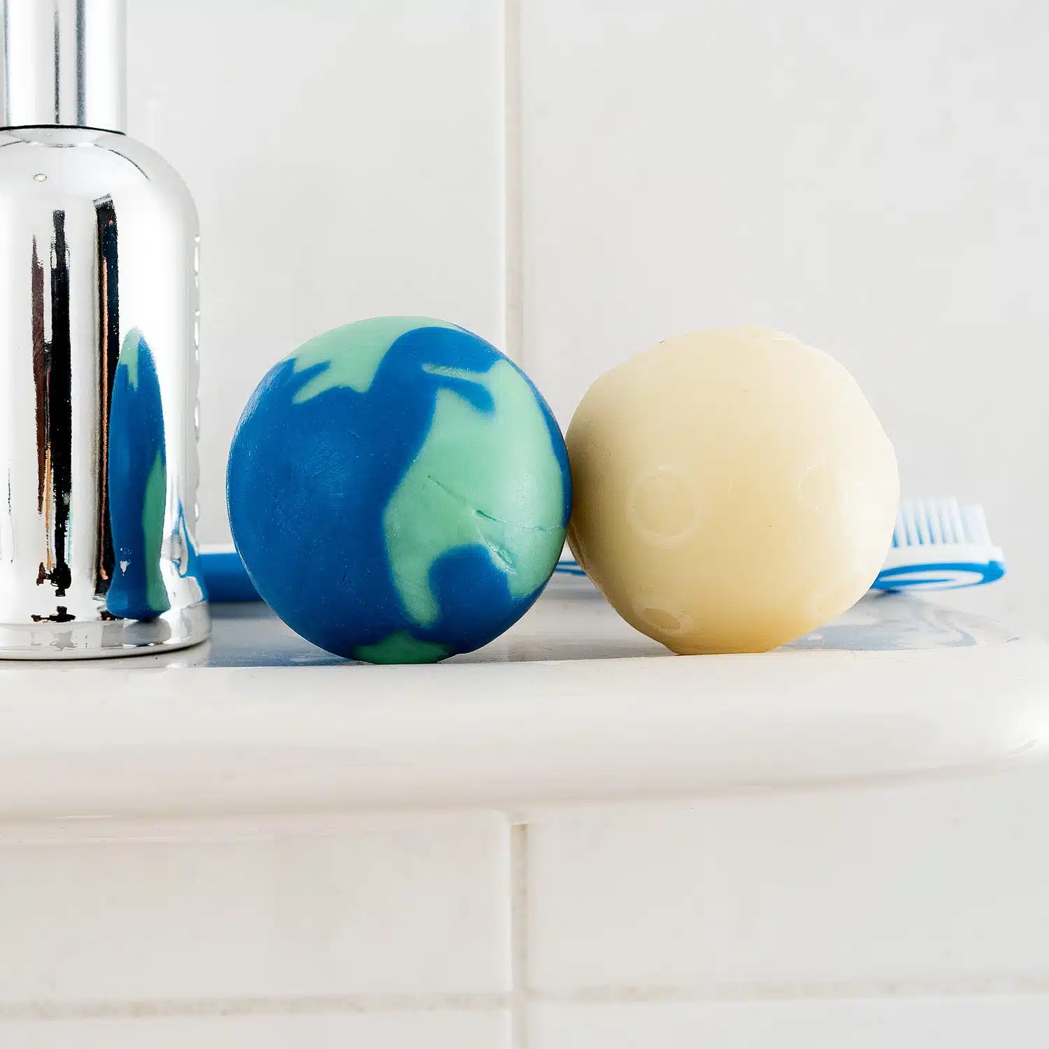 Lekker fris wakker worden doe je met de Aarde en maan zeep (set van 2) van Winkee. Deze grappige set bestaat uit een zeep die lijkt op de aarde en een zeep die lijkt op de maan. Met deze zepen wordt het makkelijker om kinderen onder de douche te krijgen. Want zeg nou zelf: je met de maan wassen, dat is toch hartstikke cool?