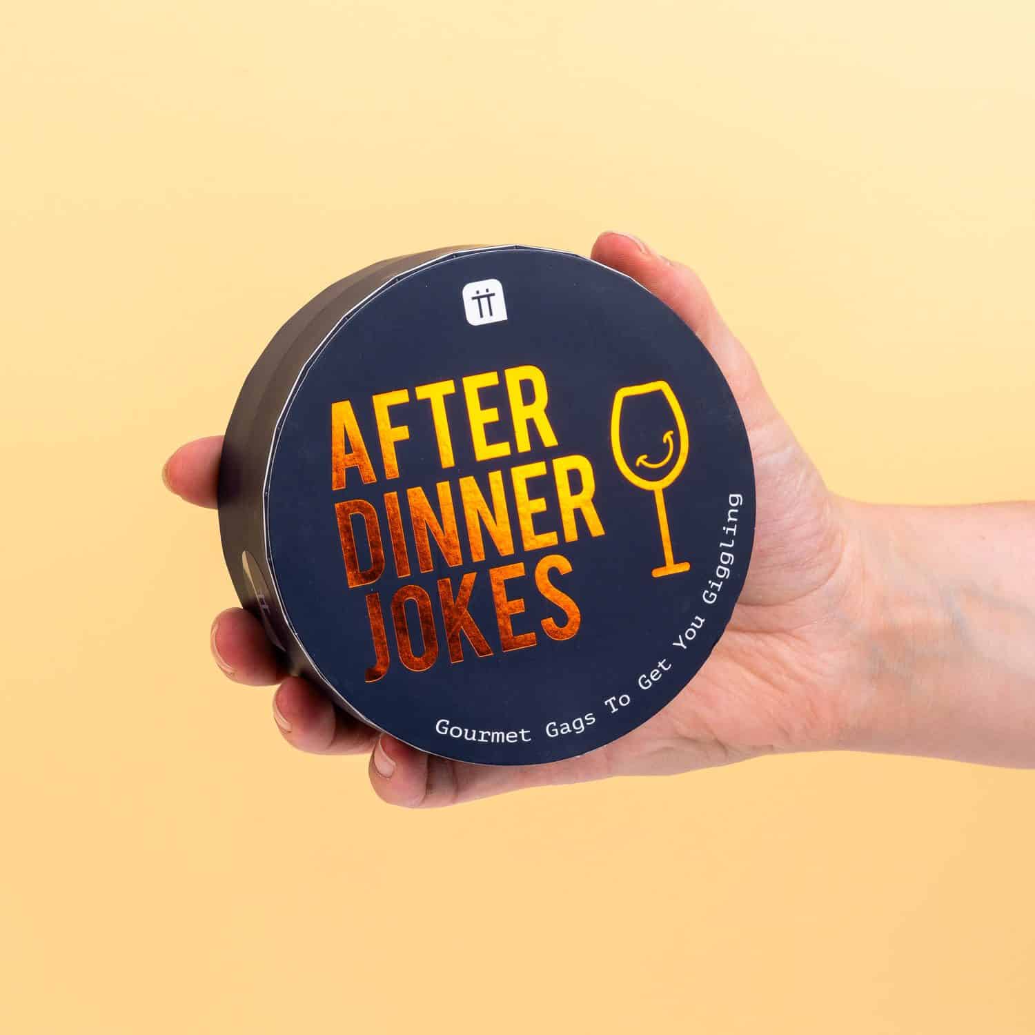 Even natafelen als er mensen komen eten is altijd gezellig. En natuurlijk is er genoeg om over te kletsen. Maar als je het net even anders wilt doen, dan kun je ook de After Dinner jokes van Talking Tables tevoorschijn halen. Dit blikje bevat 64 grappen die allemaal met eten te maken hebben. Bijvoorbeeld:What is the world’s fastest fruit? Tomato, nothing else can ketchup.