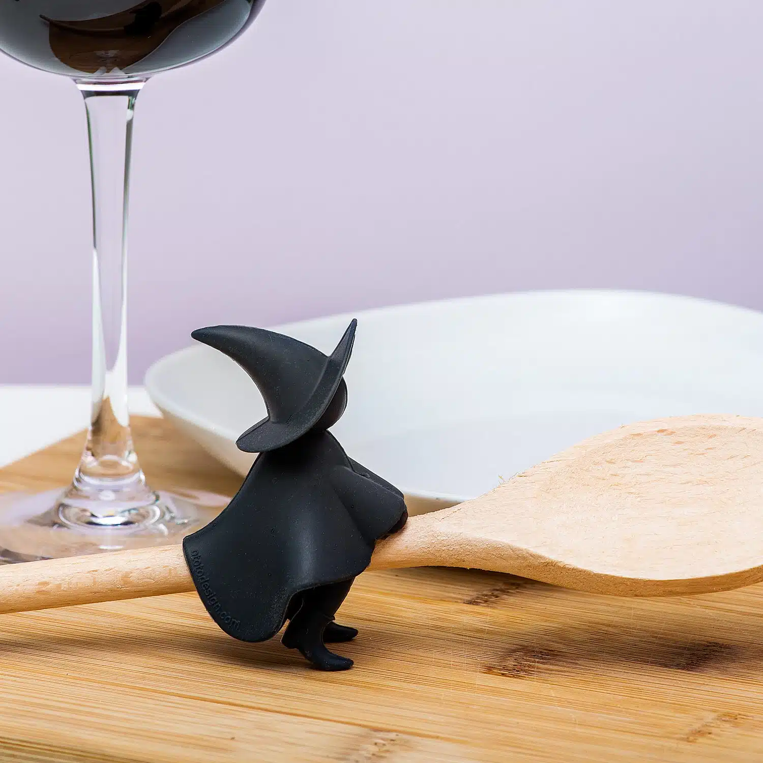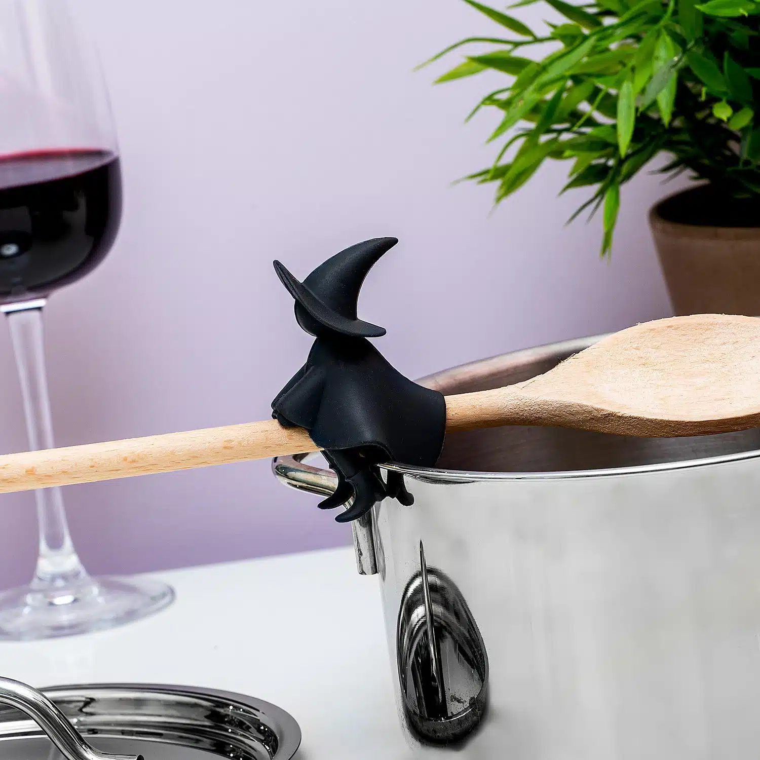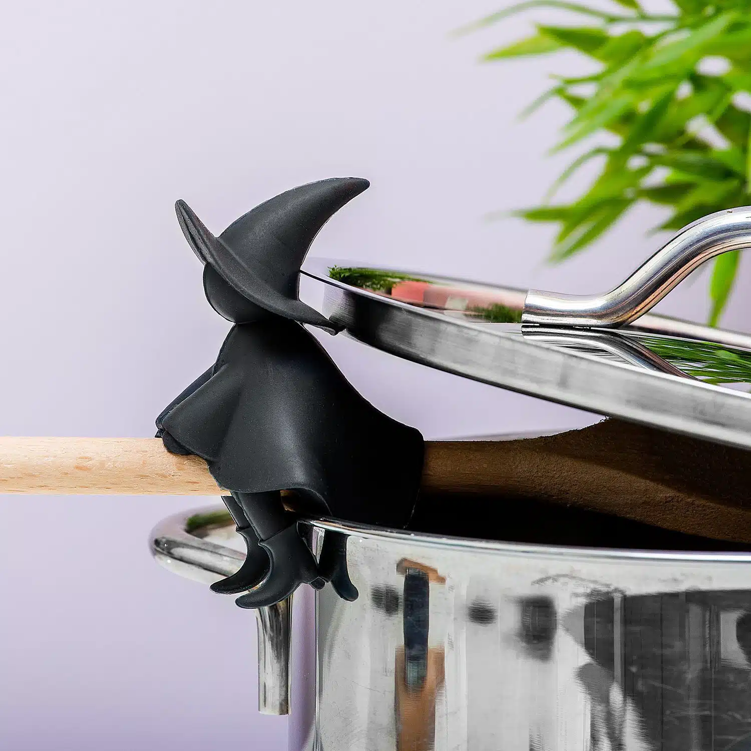 • Lepelhouder en steam releaser in de vorm van een heks