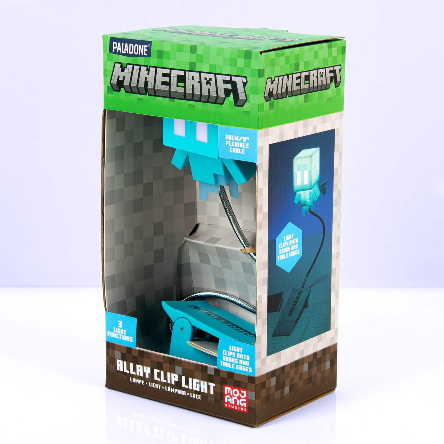 Is de Allay één van je favoriete onderdelen uit Minecraft? Dan vind je het vast fijn dat hij je helpt met lezen in het donker! Het Allay boeklampje van Minecraft is een schattig en praktisch lampje dat je aan je boek kunt clippen. Het lampje in de vorm van de vliegende Allay zit op een flexibele stang die makkelijk te verstellen is. Zo kun je ook in het donker lezen of je huiswerk maken.