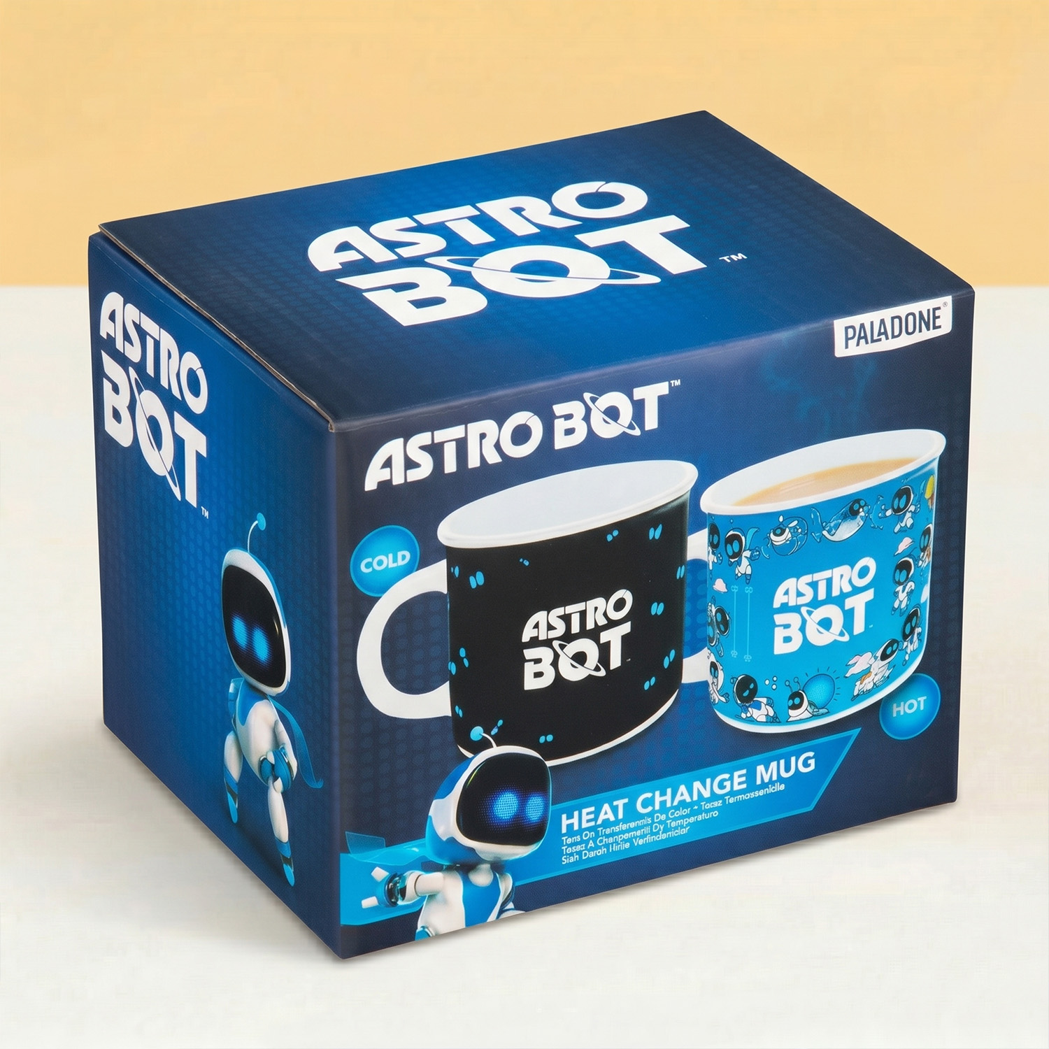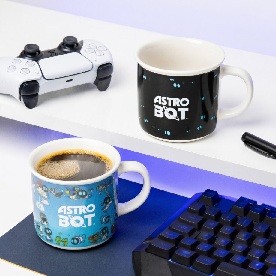Je koffiemok ziet er eerst heel normaal uit, maar schenk je er heet water in en verschijnen er opeens allemaal kleine Astro Bots, terwijl de achtergrond verandert van zwart naar lichtblauw. Deze schattige mok is perfect voor iedereen die wel een verrassing in de ochtend kan gebruiken.