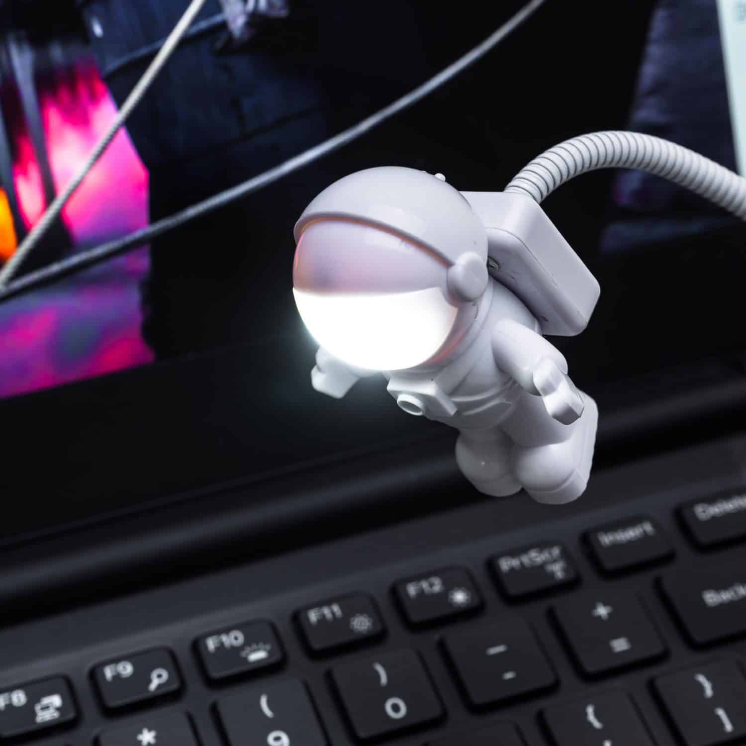 Het Astronaut USB-lampje van Out of the Blue is er voor jou: tijdens het studeren, als nachtlampje of gewoon als sfeerverlichting. Dit leuke lampje, dat eruitziet als een astronaut, lijkt door de ruimte te zweven. Dit komt omdat hij vast zit aan een flexibele stang die je in de USB-poort van je computer plugt. Om het licht te zien schuif je het vizier van de astronaut omhoog en het licht begint te schijnen. Geschikt voor in je laptop, maar ook te gebruiken in het stopcontact met een USB-stekker.