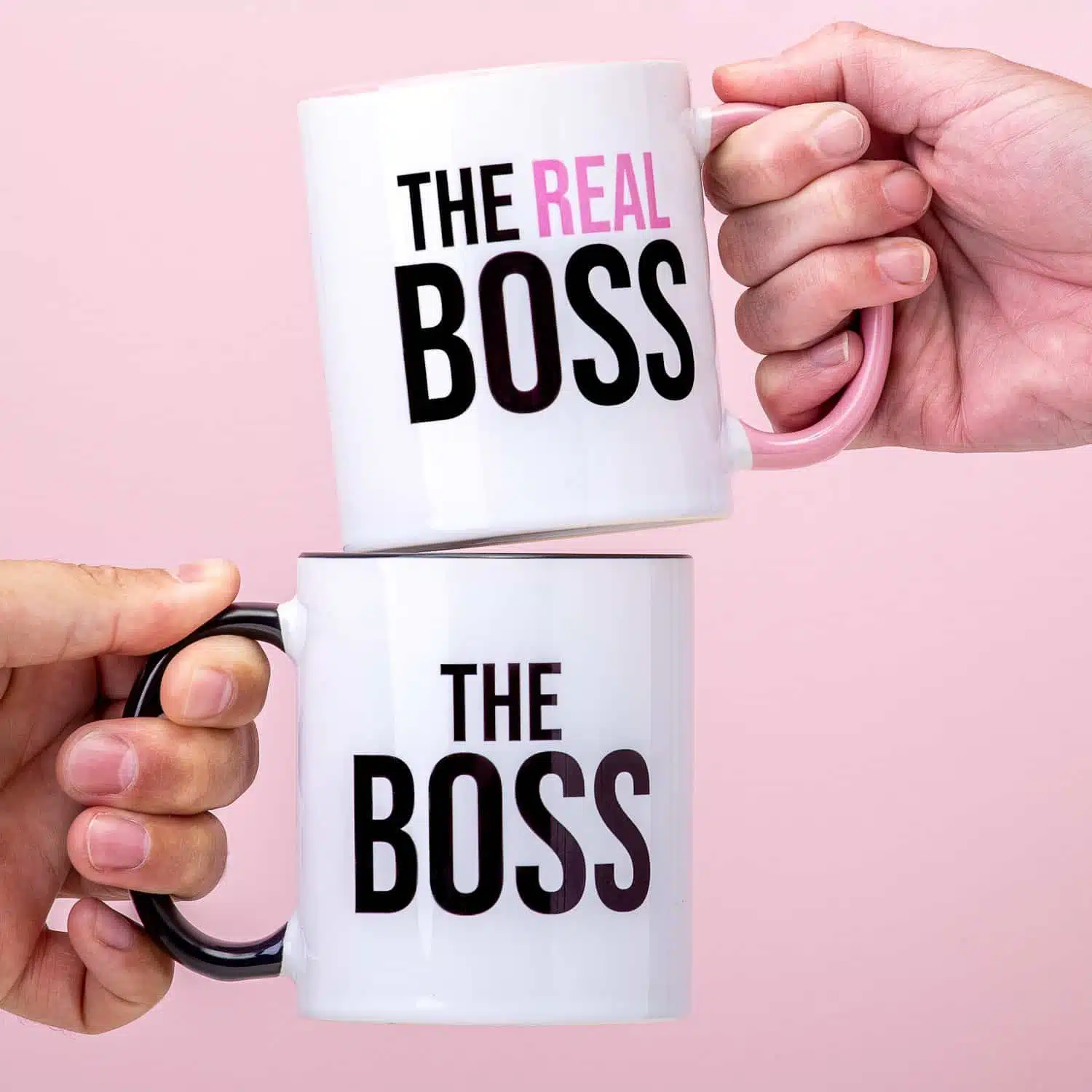 Jij hebt natuurlijk de broek aan in jullie relatie. Of wacht… denkt je partner daar ook zo over? De grappige set met The Boss en The Real Boss mokken speelt hier op in. De ene mok is voor jou, de ander voor je geliefde. De set van 2 bekers is grappig als cadeau voor een vriend die binnenkort gaat trouwen bijvoorbeeld. De mokken zijn overigens ook los verkrijgbaar. Heb jij als bedrijfseigenaar een Zoom-meeting met anderen? Dan is The Boss mok heel geschikt om koffie uit te drinken.