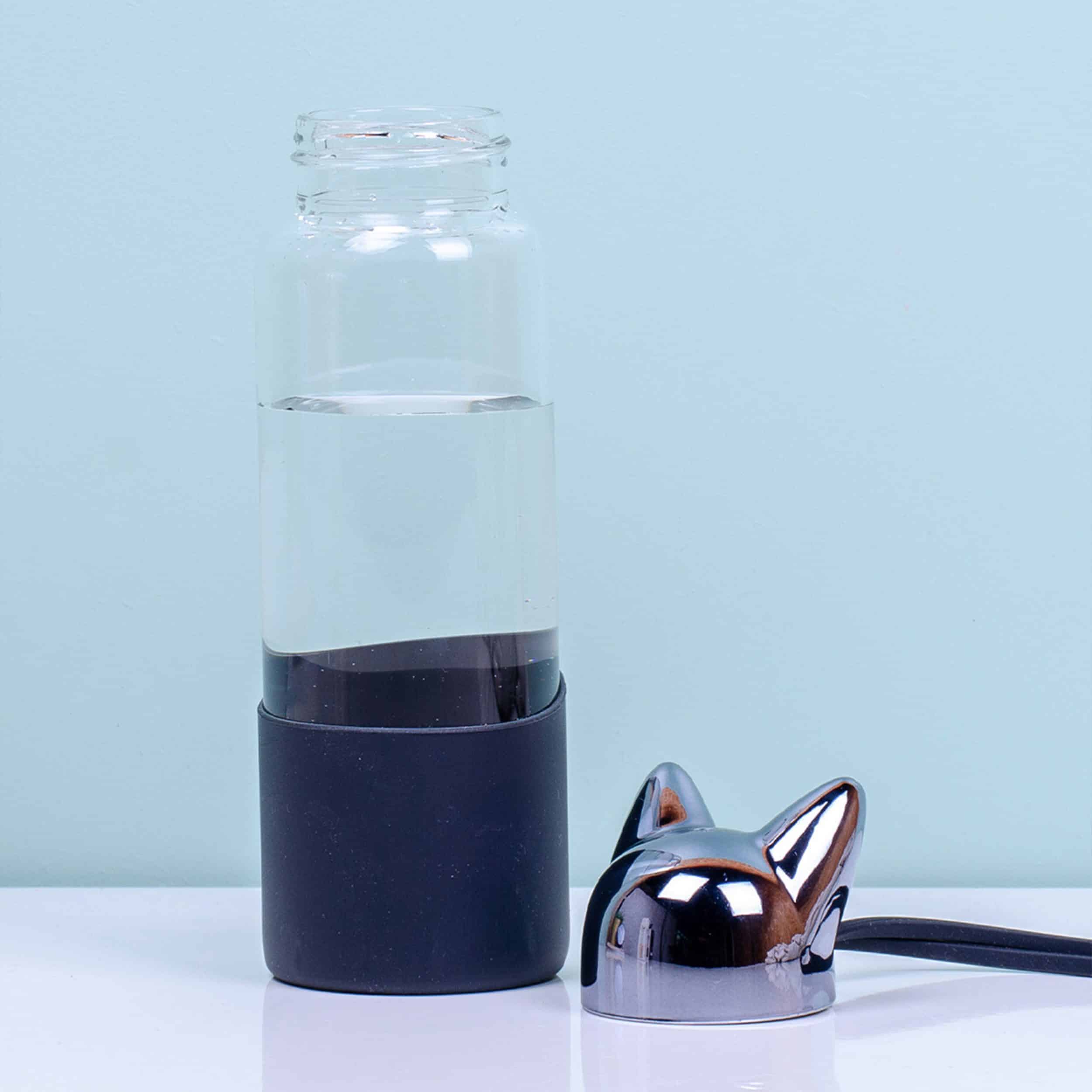 Ga voor duurzaam en neem je flesje water gewoon mee van huis. Zo hoef je onderweg niet steeds water te kopen en verbruik je minder plastic. De Kat waterfles van Balvi is bovendien veel leuker dan een plastic fles. Deze waterfles, gemaakt van stevig boriumsilicaat glas, heeft een dop met kattenoortjes. Aan de onderkant zit een deel van siliconen, dat ervoor zorgt dat de fles niet uit je handen glipt. En met het siliconen hengsel neem je de fles makkelijk mee. Leverbaar in zwart of roze met goud.
