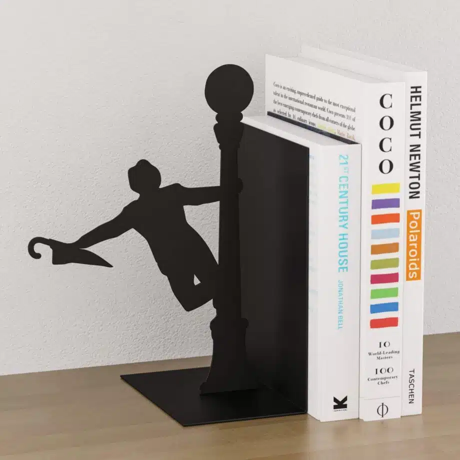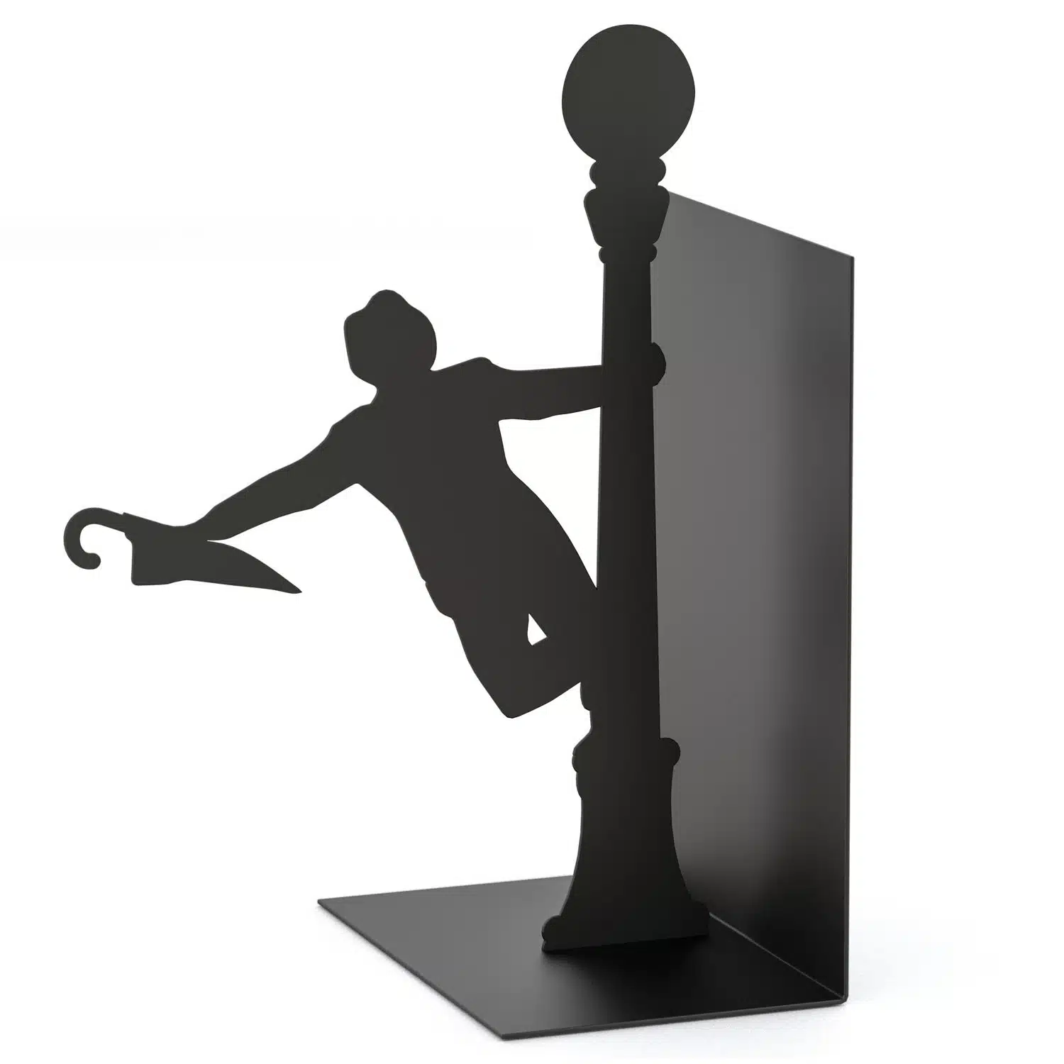 Heb je een boekenplank met je mooiste boeken, maar blijven ze steeds maar omvallen? Gebruik dan de Singing in the Rain boekensteun van Balvi. Deze boekensteun ziet eruit als de filmscène uit Singing in the Rain waarbij Gene Kelly zingend, in de stromende regen, in de lantaarnpaal hangt. De boekensteun met deze iconische scène is gemaakt van metaal. Aan de onderkant zitten siliconen dopjes, zodat ‘ie niet weg kan glijden.