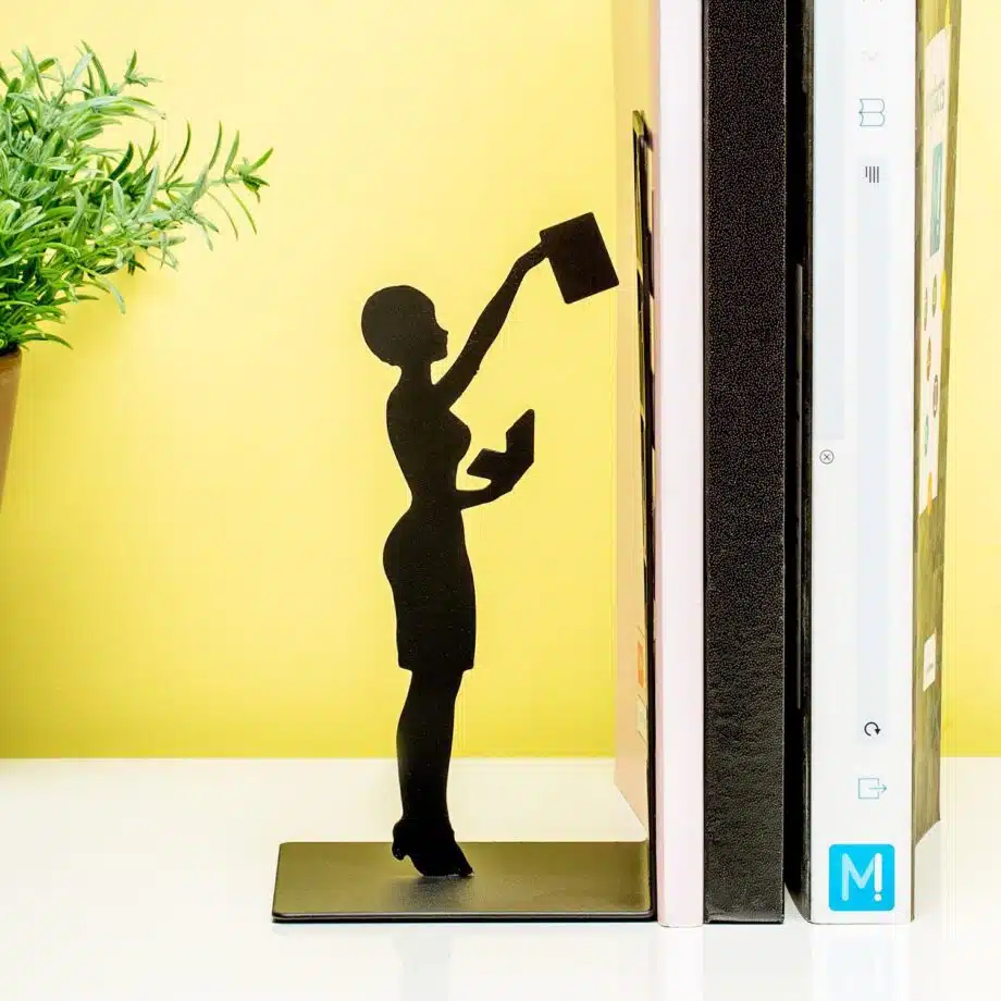 Als je een plank hebt waarop je je mooiste boeken hebt uitgestald, dan is het wel zo handig als ze ook netjes rechtop blijven staan. Met The Library boekensteun van Balvi is dat een fluitje van een cent. Deze boekensteun ziet eruit als een boekenkast in de bibliotheek en is zelfs voorzien van een vrouw die een boek terugzet. De steun is gemaakt van zwart metaal en heeft siliconen dopjes, zodat hij niet kan wegglijden. Voortaan bewaar je je boeken in stijl!