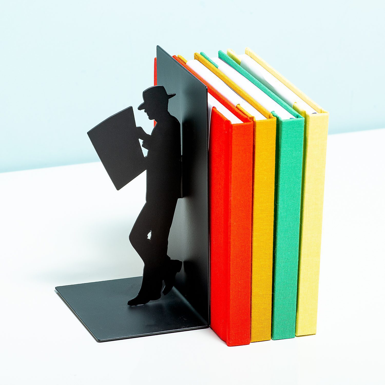 Geef je inrichting een heel eigen stijl met The Reader boekensteun van Balvi. Met deze boekensteun blijven je boeken keurig rechtop staan. En door het design lijkt het net alsof er iemand met een bolhoed tegen je boek geleund staat terwijl hij zijn krant leest. De metalen steun is stevig, dus het maakt niet uit hoeveel boeken er tegenaan leunen. Aan de onderkant zitten siliconen dopjes, zodat hij niet kan wegglijden.