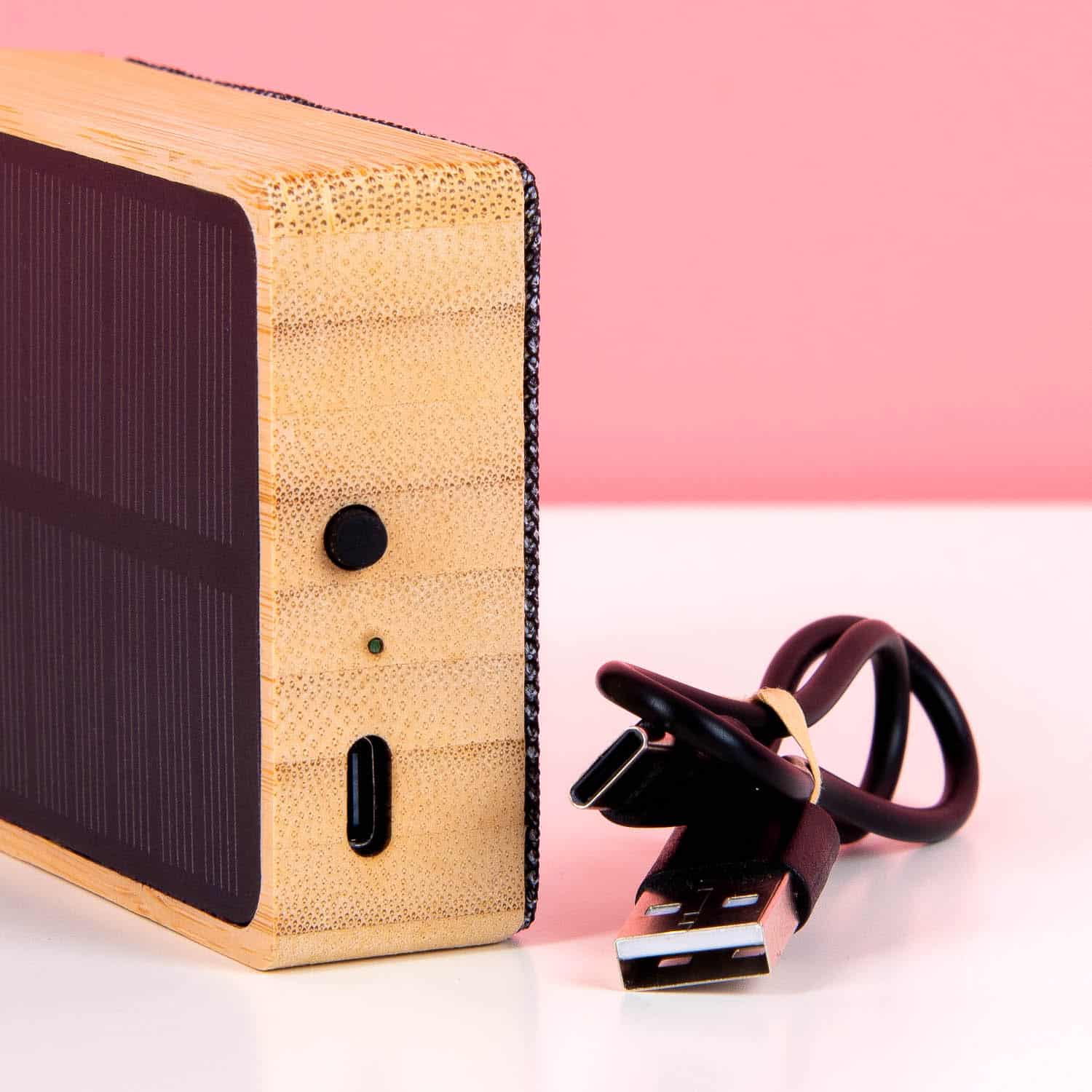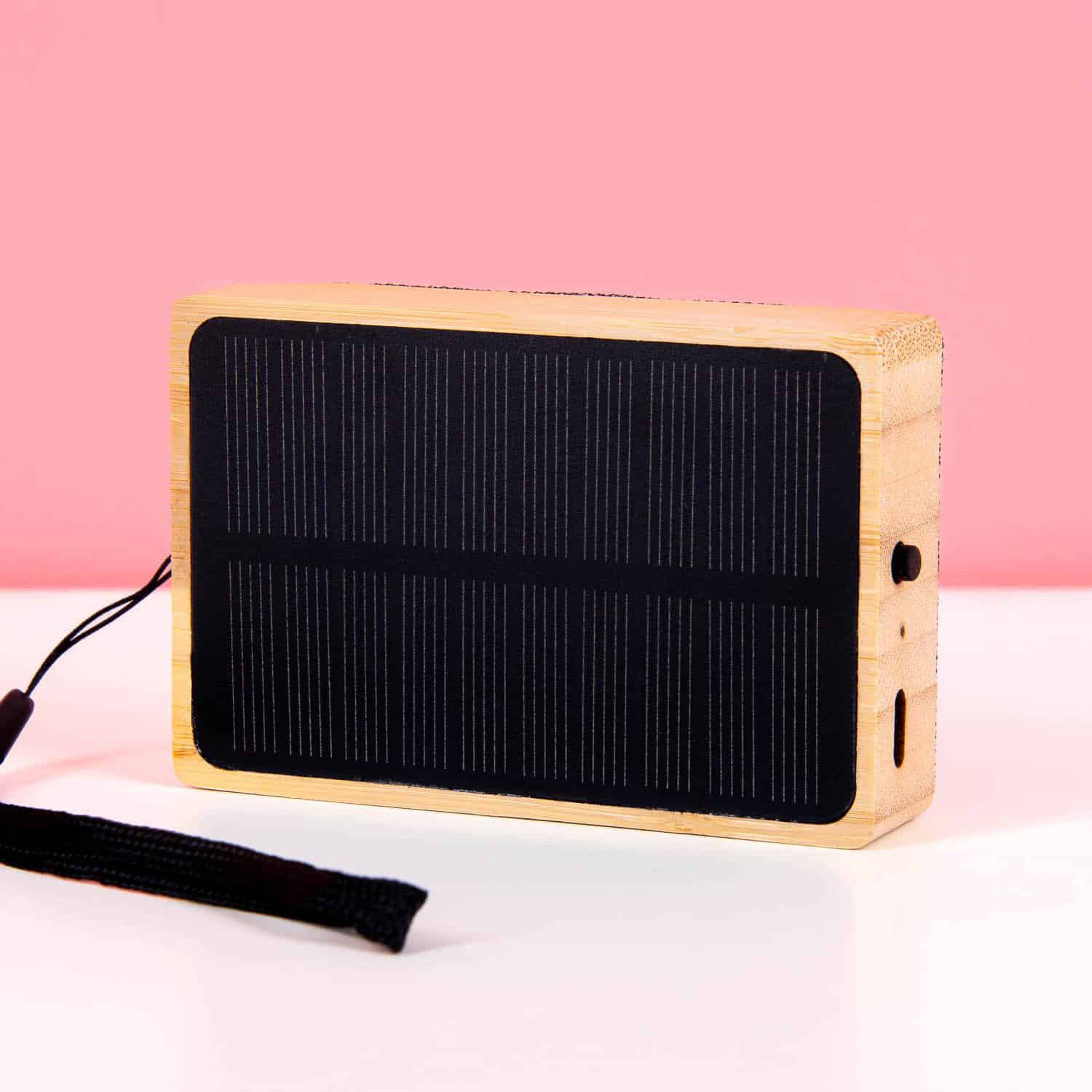 Lig je net lekker op het strand te chillen met een muziekje, is de accu van je speaker leeg. Dat is geen probleem met de Bamboe speaker op zonne-energie van MikaMax. Deze handige en stijlvolle speaker wordt opgeladen door de zon, zodat je snel weer kunt genieten van je muziek. De speaker is lichtgewicht en dus makkelijk mee te nemen, maar hij staat ook prachtig in de tuin of slaapkamer. Verbind de speaker via Bluetooth aan je telefoon en je kunt hem direct gebruiken.