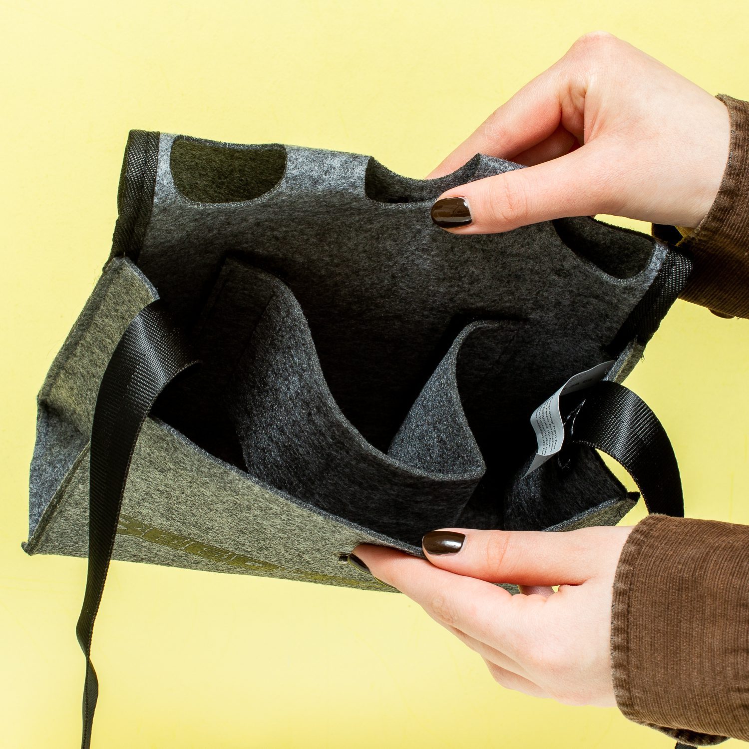 Een origineel cadeautje kopen voor een bierliefhebber? Geef hem of haar de Beer To Go schoudertas cadeau! Deze hilarische biertas zorgt ervoor dat diegene veilig drie flesjes bier kan meenemen. De vilten schoudertas heeft verschillende vakken en een opening aan de bovenkant voor de halzen van de flesjes. Een ideaal cadeautje als je zelf biertjes moet meenemen naar een barbecue of ander feestje.