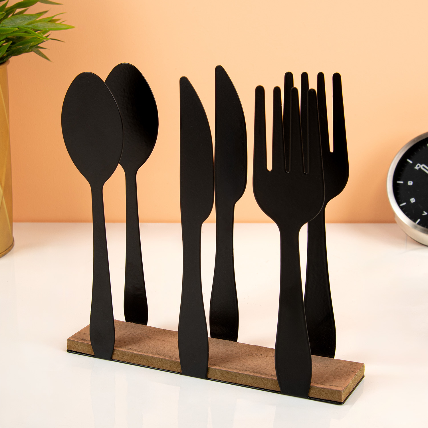 Vier je een feestje? Zet alvast de Bestek servethouder op tafel, dan maak je het je gasten lekker makkelijk. Gemorste wijn, een bitterbal met een dikke klodder mosterd: het maakt niet uit hoe erg je smeert, met deze servethouder in de buurt is alles snel weer onder controle. De extra grote vork, lepel en mes houden de servetten op hun plaats.