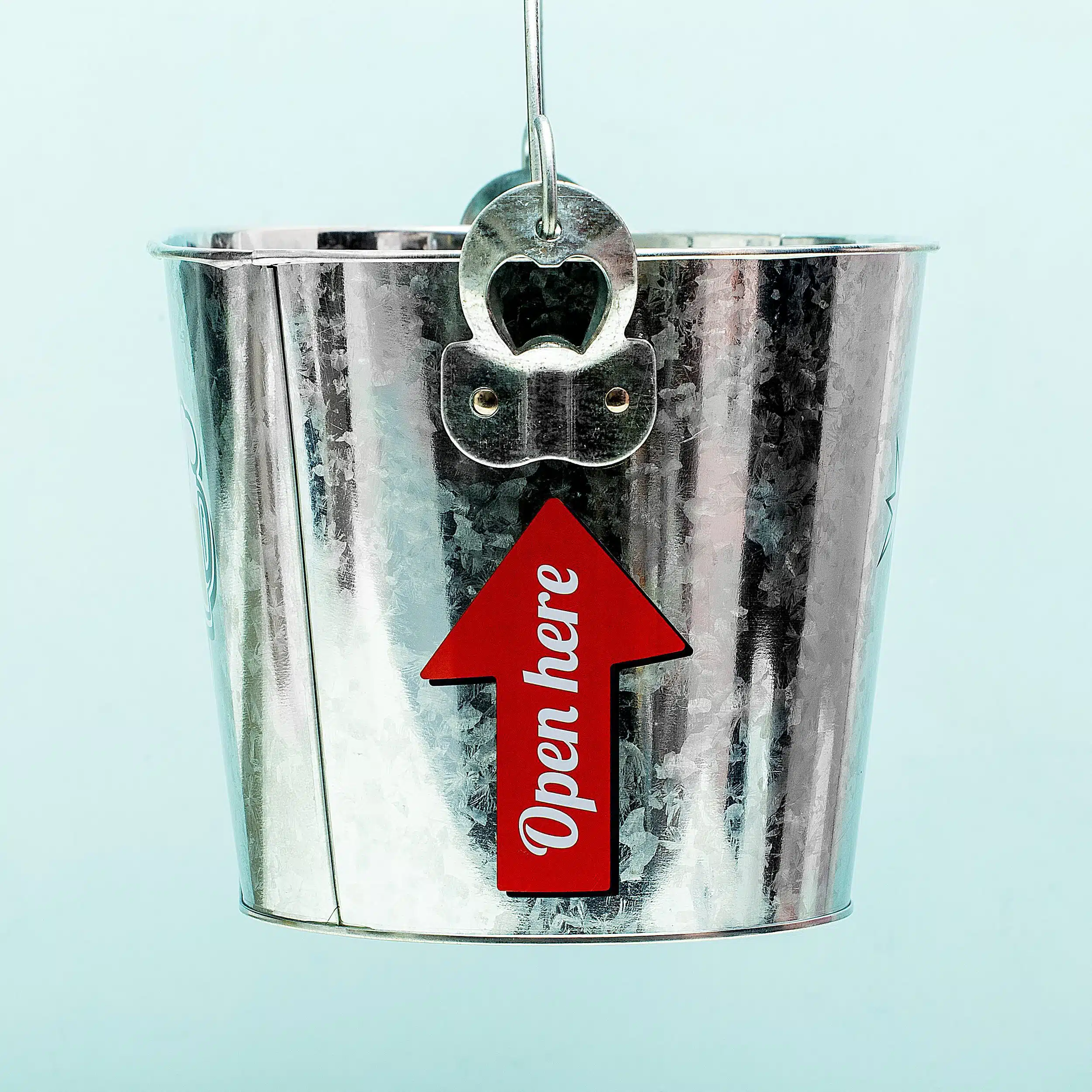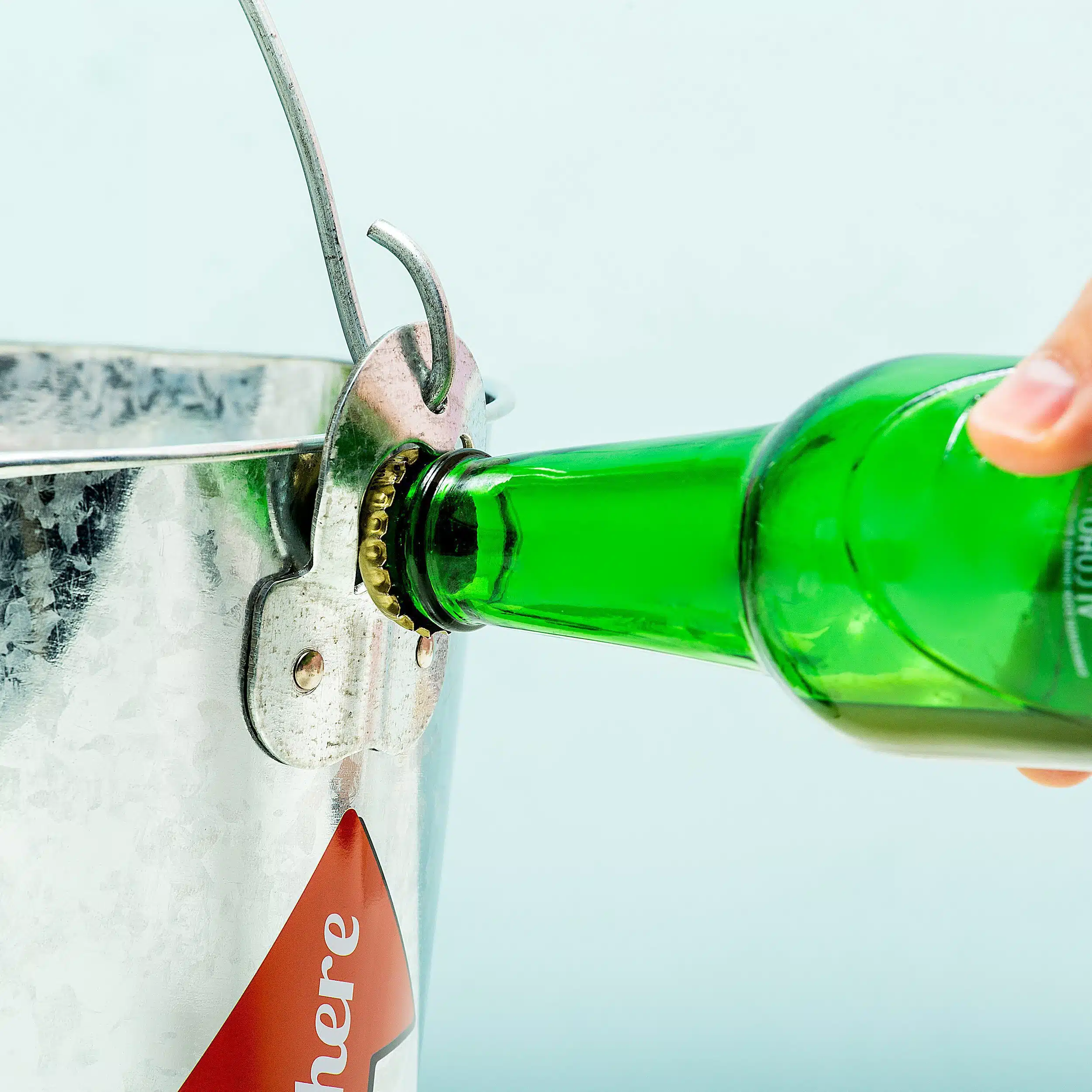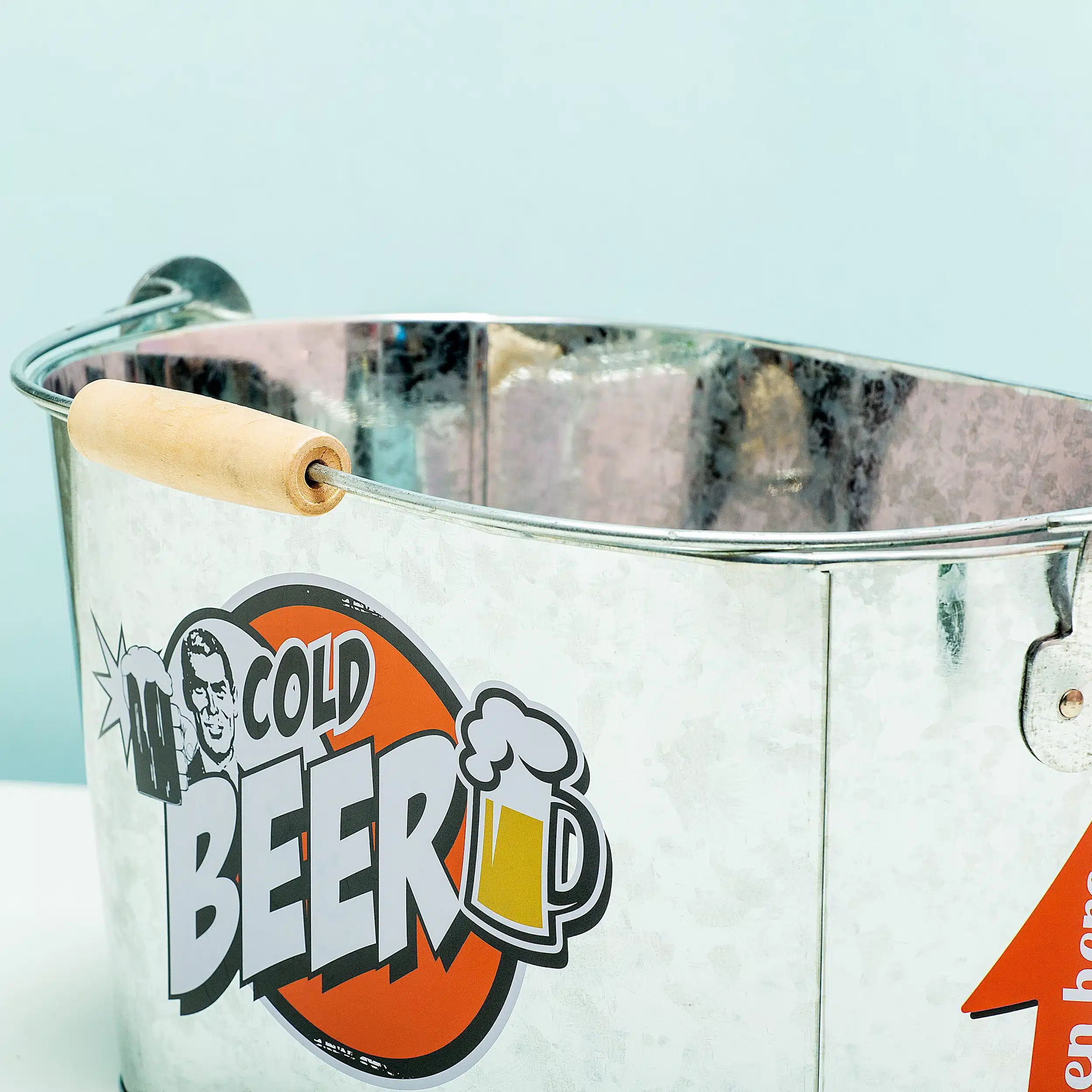 Waar is dat feestje? Nou hier, bij het koude bier natuurlijk. Met de Bier koelemmer Cold Beer van Out of the Blue heb je nooit meer last van lauw bier. Je vult de bieremmer met ijs en legt de bierflesjes of andere flesjes drank er in. Zo blijft het bier heerlijk koel, terwijl je niet steeds je koelkast hoeft bij te vullen. De koelemmer heeft daarnaast aan de zijkant twee handige openers die je nooit kwijt raakt. Zijn alle flesjes opeens uit de emmer verdwenen? Dan is de volgende lading bier zo gekoeld als je de flesjes in het ijs legt. De Cold Beer koelemmer is gemaakt van metaal. In de emmer is voldoende ruimte voor heel veel ijsblokjes en een stuk of vijf tot zeven flesjes drinken. Zo kunnen jij en je vrienden lekker genieten van een koud biertje in de zon.