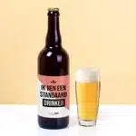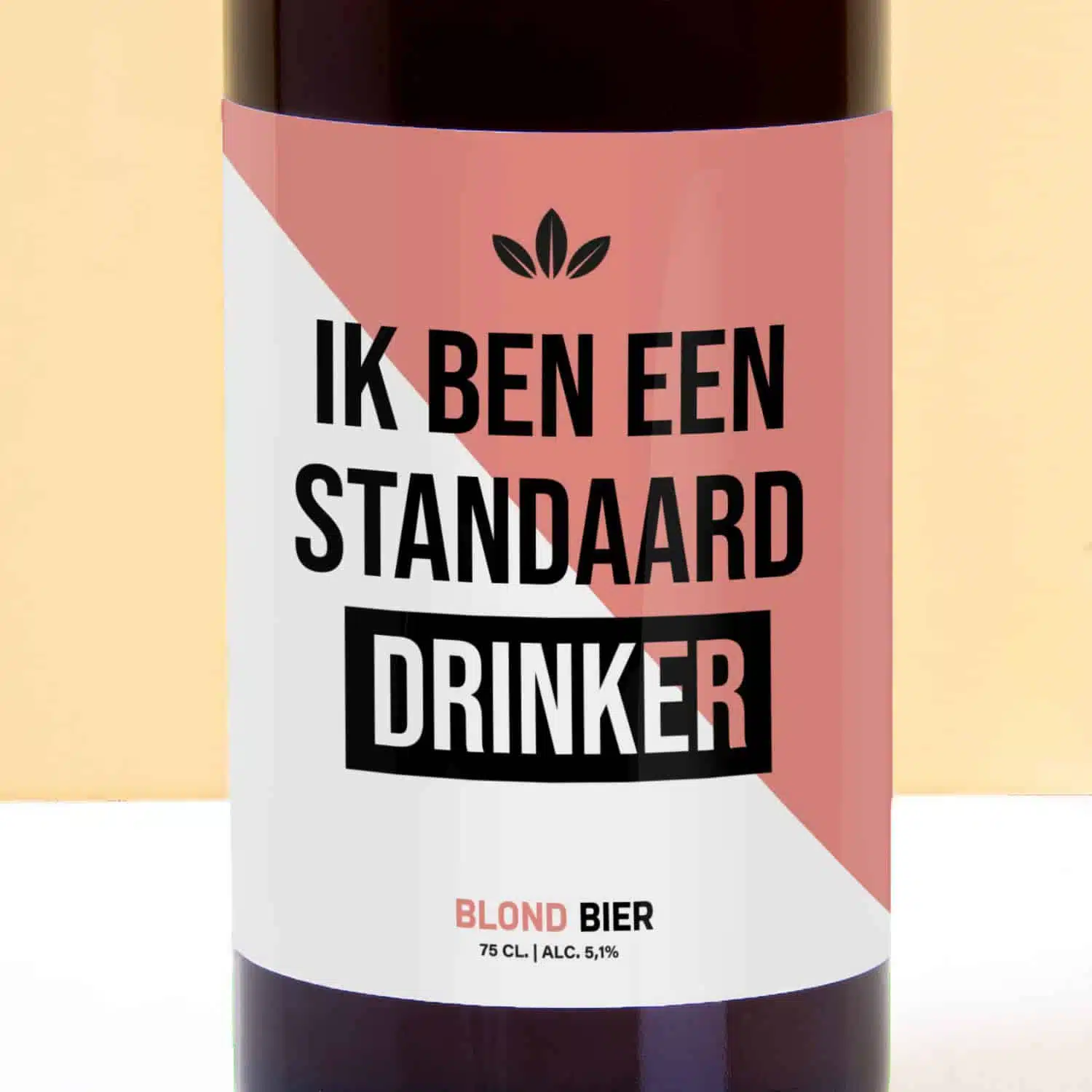 Een standaard drinker drinkt heel wat borrels en biertjes op een dag, zo hebben we geleerd uit een zeker tv-programma. De Bierfles Standaard drinker kan daar ook nog wel bij. Deze bierfles, met 750 milliliter overheerlijk blond bier, is een perfect tussendoortje voor de standaard drinker. Op het etiket staat dan ook: Ik ben een standaard drinker.
