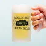 Vaders hebben de neiging om hun scheten gewoon te laten vliegen als ze daar behoefte aan hebben. Dat jij je daarvoor schaamt lijkt ze alleen maar te stimuleren om het nog vaker te doen. Verras je vader deze Vaderdag of gewoon zomaar met de Bierpul Worlds best farter. Op deze bierpul van gematteerd glas staat de tekst: World’s best farter. I mean father.