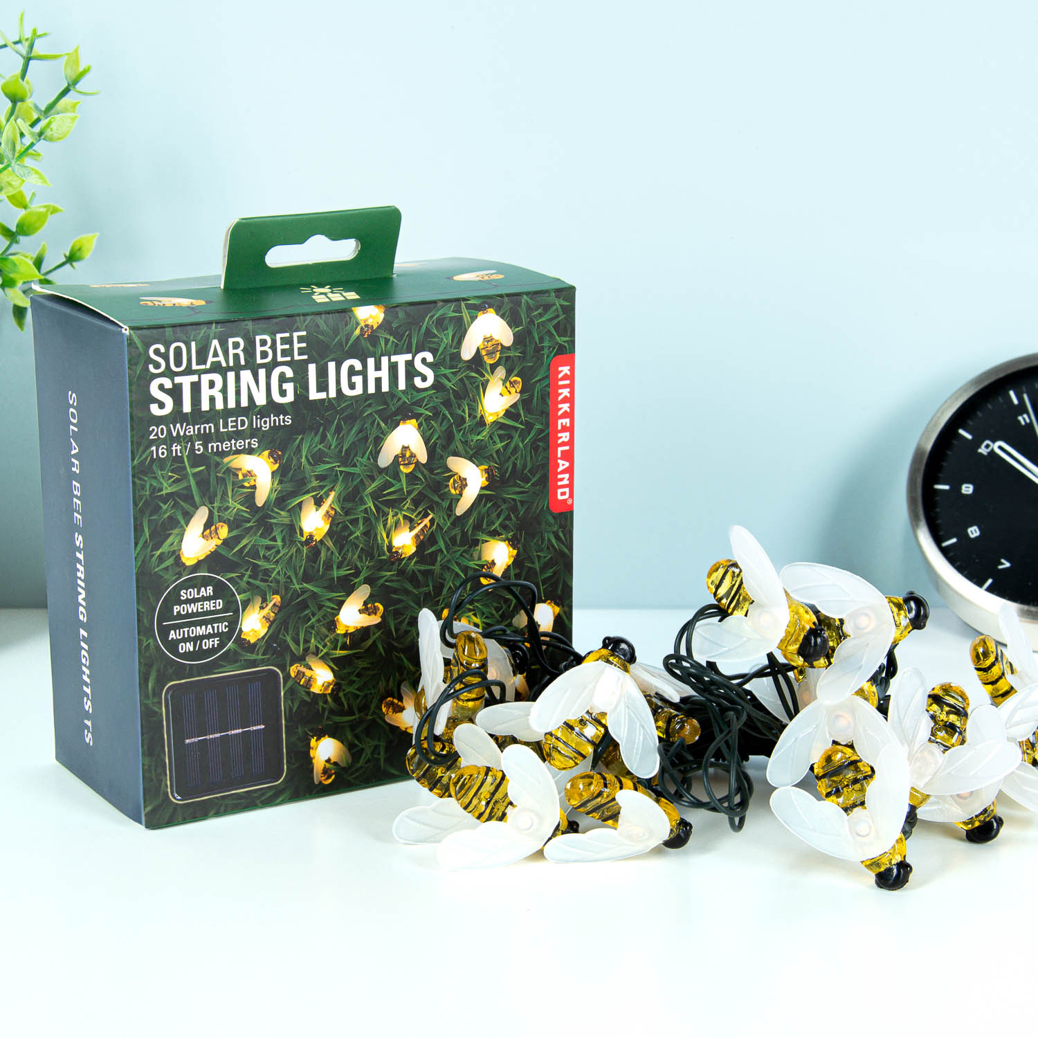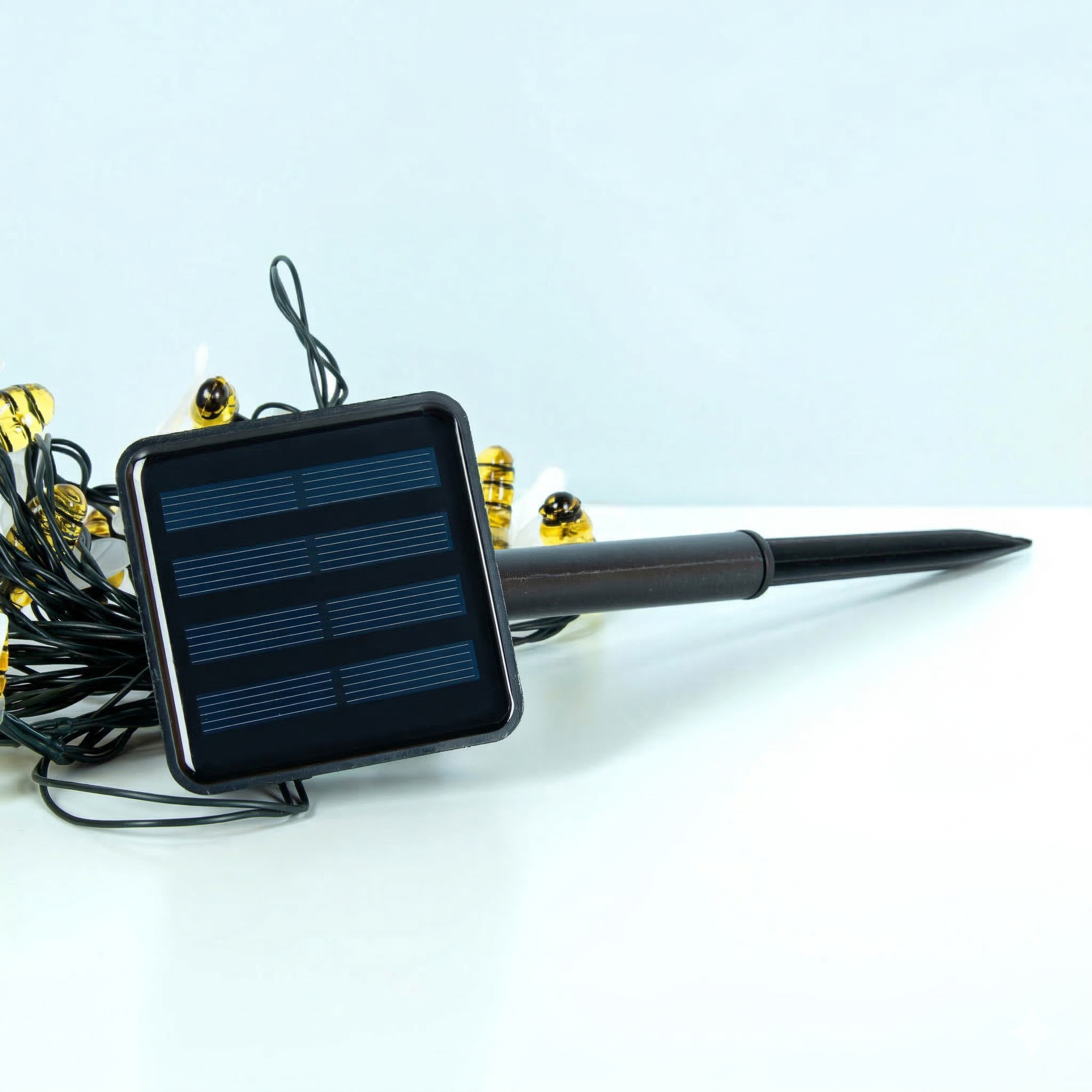 Het Bijen lichtsnoer op zonne-energie van Kikkerland is er voor iedereen die van een gezellige tuin houdt (en van schattige bijtjes). Deze lichtslinger met 20 glimmende bijtjes laadt overdag op met het zonnepaneel en licht ‘s avonds automatisch op. Perfect voor in de tuin, op het balkon of zelfs binnen. Je hebt geen batterijen nodig: gewoon ophangen en genieten. Want wie is er nou niet dol op een zwerm onschuldige bijtjes die je tuin verlichten?