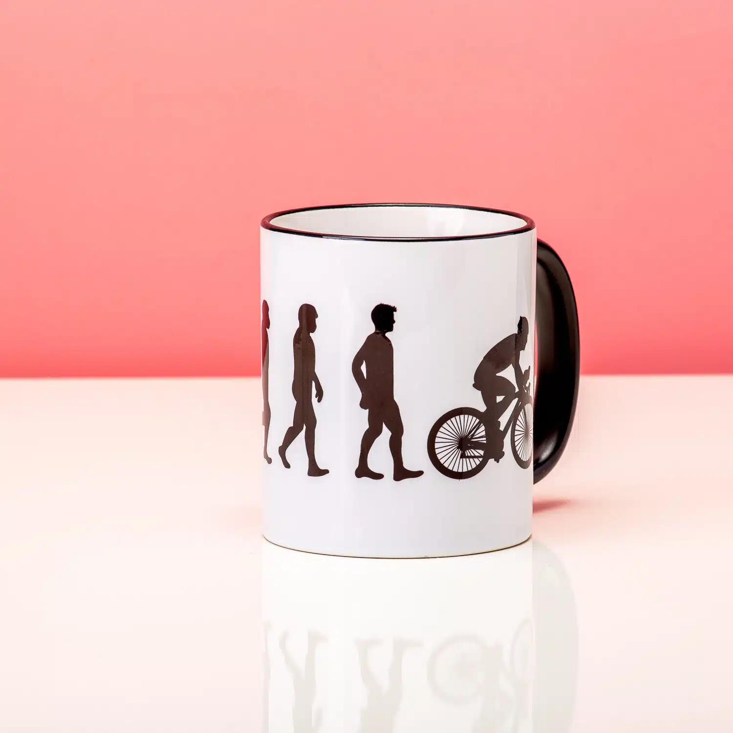 Zoek je een leuk cadeautje voor iemand die dol is op fietsen, wielrennen of mountainbiken? Dan is de Bike Evolution mok het perfecte kado! Deze beker toont de evolutie van de mens: van aapmens tot aan een man op een mountainbike. De originele mok is leuk voor iedereen die elk vrij moment op de fiets springt om even lekker te rijden. Druk om de vaat hoef je je in elk geval niet te maken; de beker kan gewoon in de vaatwasser.