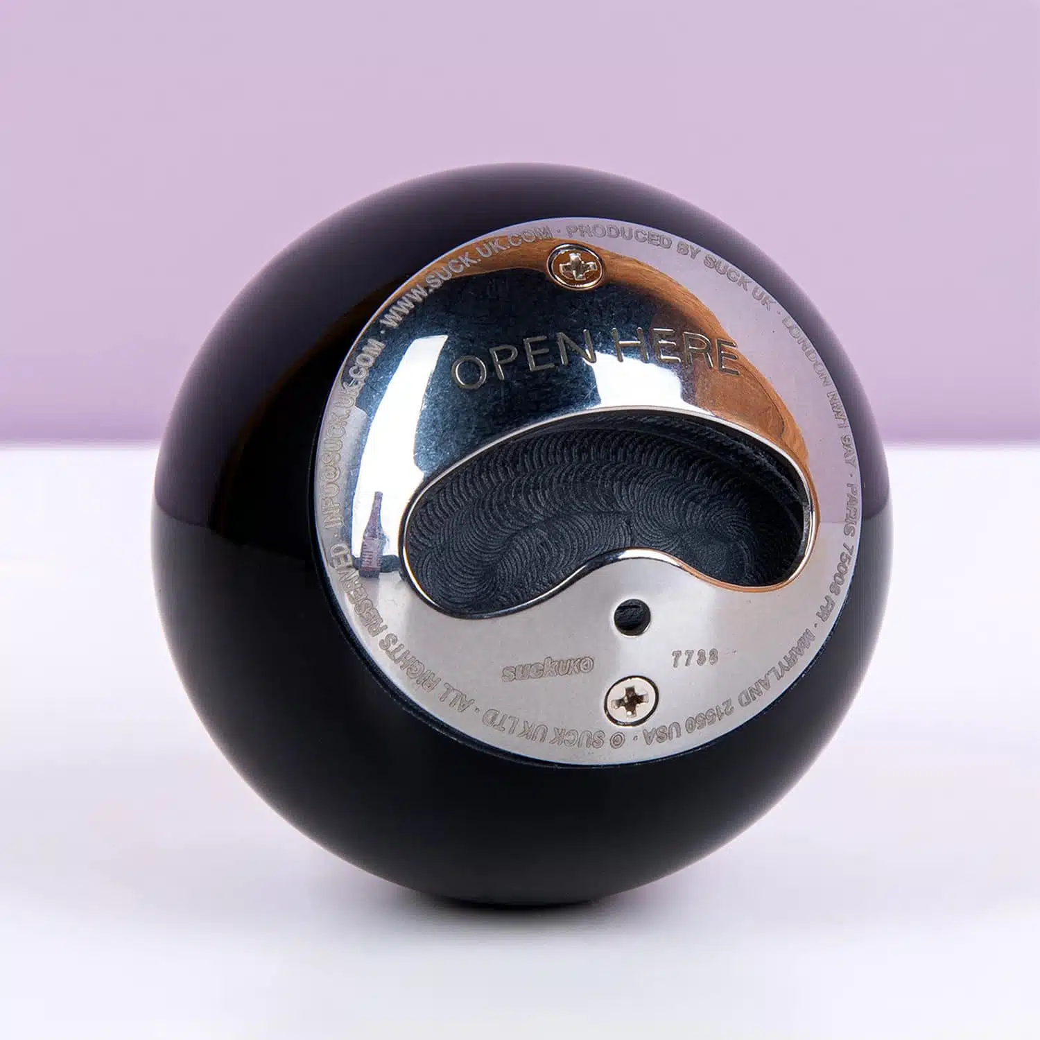 Is poolen jouw favoriete bezigheid in de kroeg? Dan vind je de Biljartbal flesopener van Suck UK vast leuk. Deze bieropener is gemaakt van een echte biljartbal: de zwarte nummer 8 bal. Het enige verschil met de ballen op de pooltafel is dat deze bal een stalen flesopener aan de achterkant heeft. Gebruik je hem, dan is het net alsof je in de kroeg staat. Een origineel cadeau voor iedereen die graag een biertje drinkt en poolt.