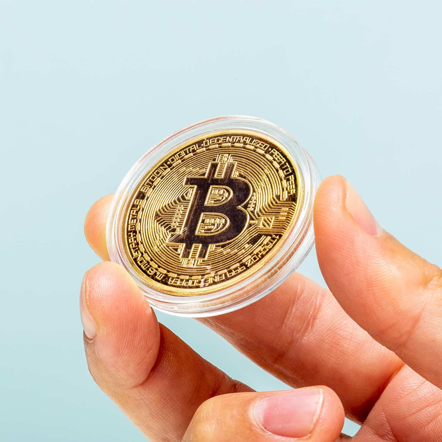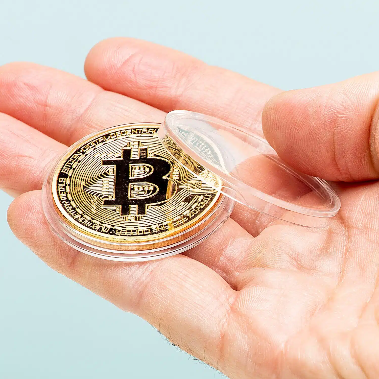 - Bitcoin munt in een harde plastic hoes