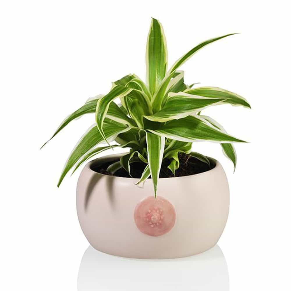 Een schaal met Engelse drop in de vorm van een borst met gezellige roze tepel. Of een borst bloempot met een plantje erin. Wat zie jij in de Borst kom van Bitten? De kom is een ode aan de vrouwelijke vorm en onderdeel van de Boob collection. Zet de kom in de vorm van een borst in je woonkamer met een plant erin. Of gebruik hem om koekjes of chips in te serveren. Je kunt hem voor de gein ook cadeau geven aan je totaal niet preutse vriendin. De kom is gemaakt van keramiek.