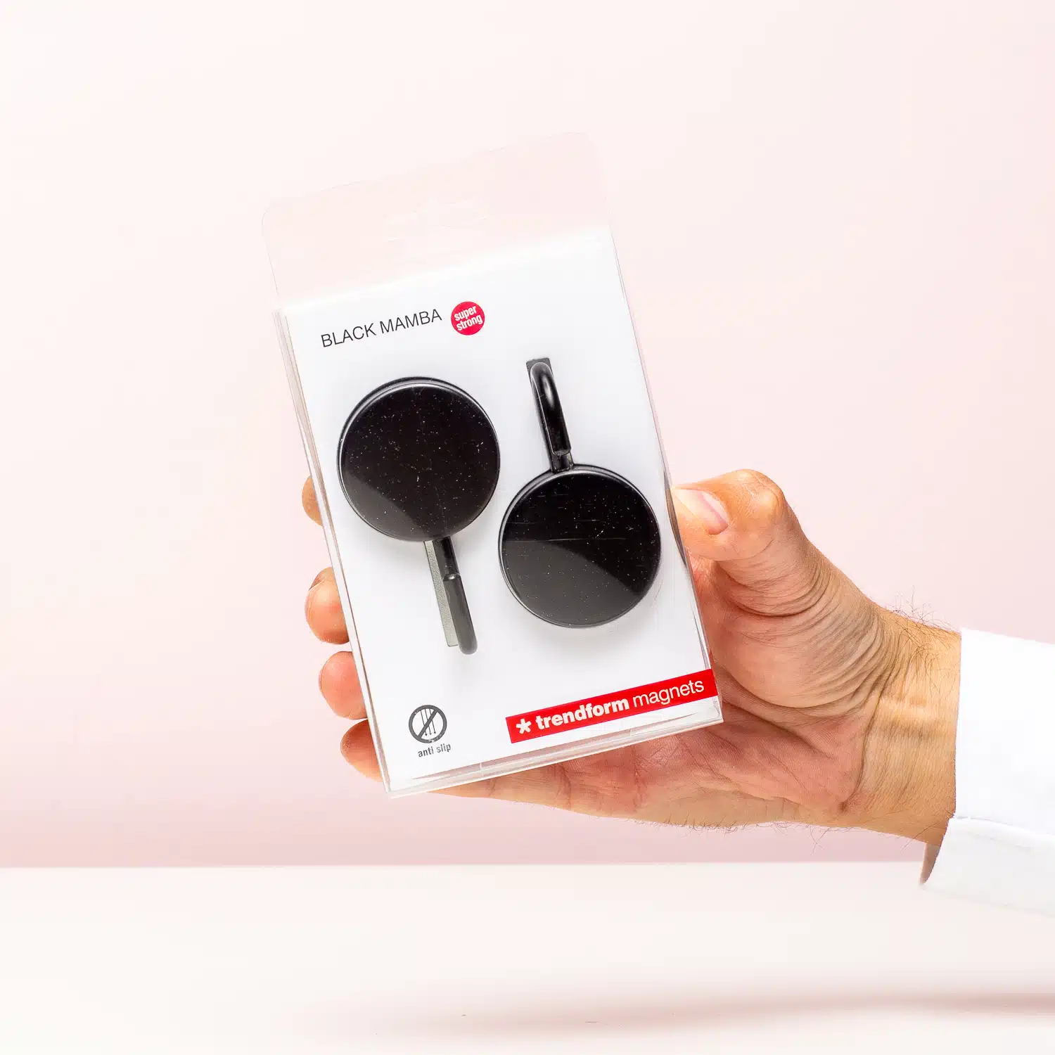 Black Mamba magnetische haakjes (set van 2) van Trendform. Praktische haken om aan een metalen oppervlak te hangen. Handige zwarte haken voor het ophangen van bijvoorbeeld hand- en theedoeken in de keuken. De magnetische haken blijven plakken aan de deur van de metalen koelkast en andere metalen oppervlaktes. Afmeting: 7 x 3 x 4 centimeter.
