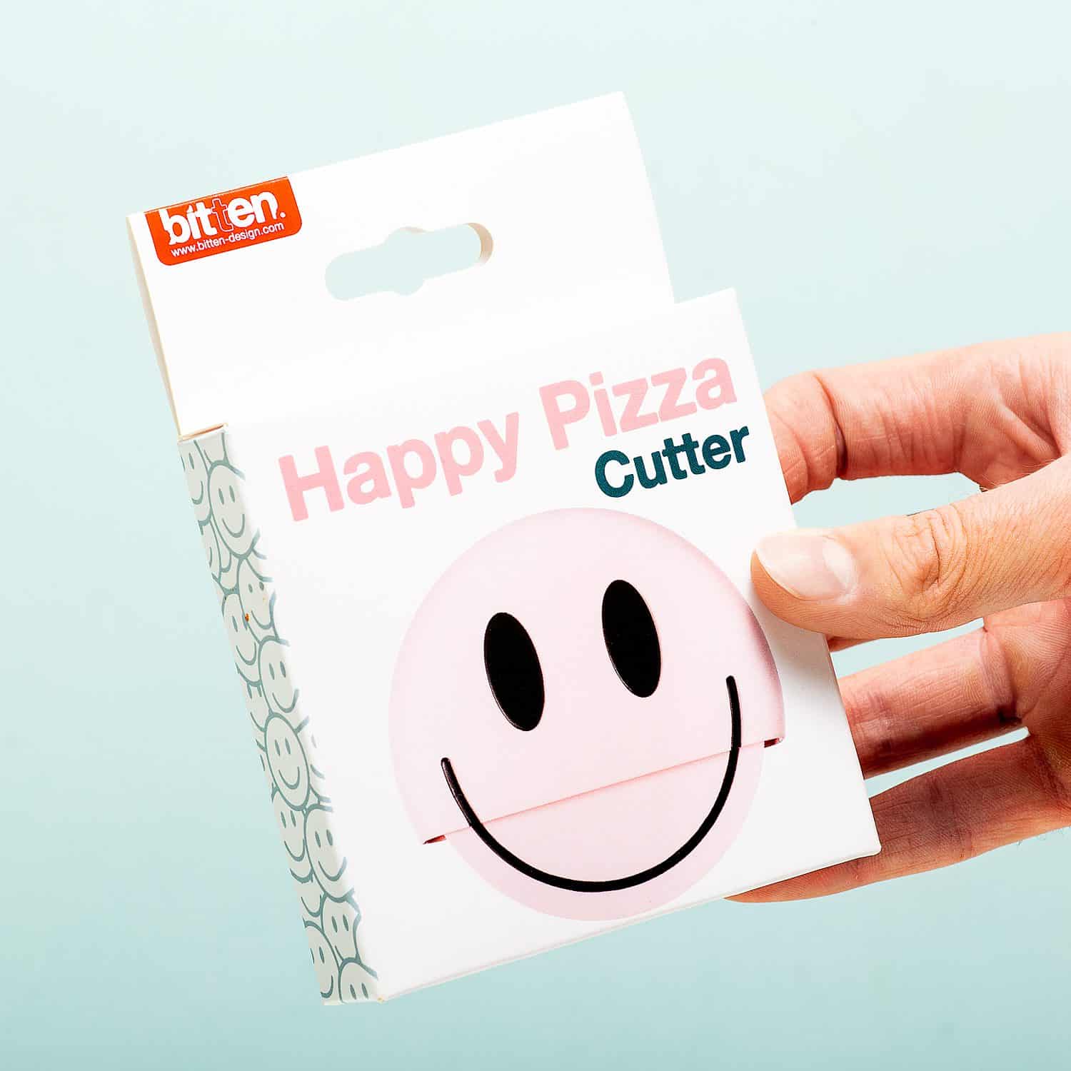 Natuurlijk maakt het feit dat je pizza gaat eten je al blij. De Blije pizzasnijder van Bitten versterkt dat gevoel alleen maar. Dit halfronde pizzames heeft een handvat in de vorm van een smiley. Op het scherpe mes staat de rest van de glimlachende mond. Een perfect cadeautje voor iedereen die dol is op pizza.