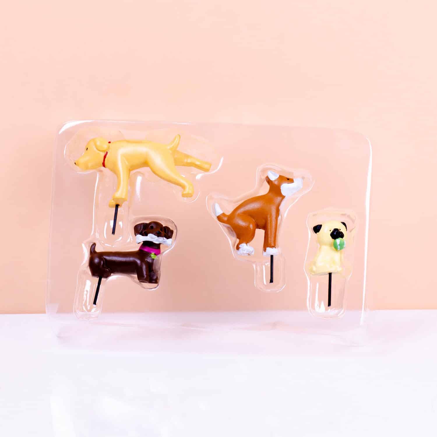 • Set van vier schattige hondjes voor in je bloempot