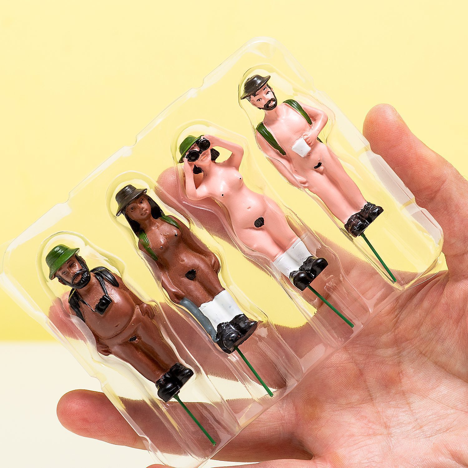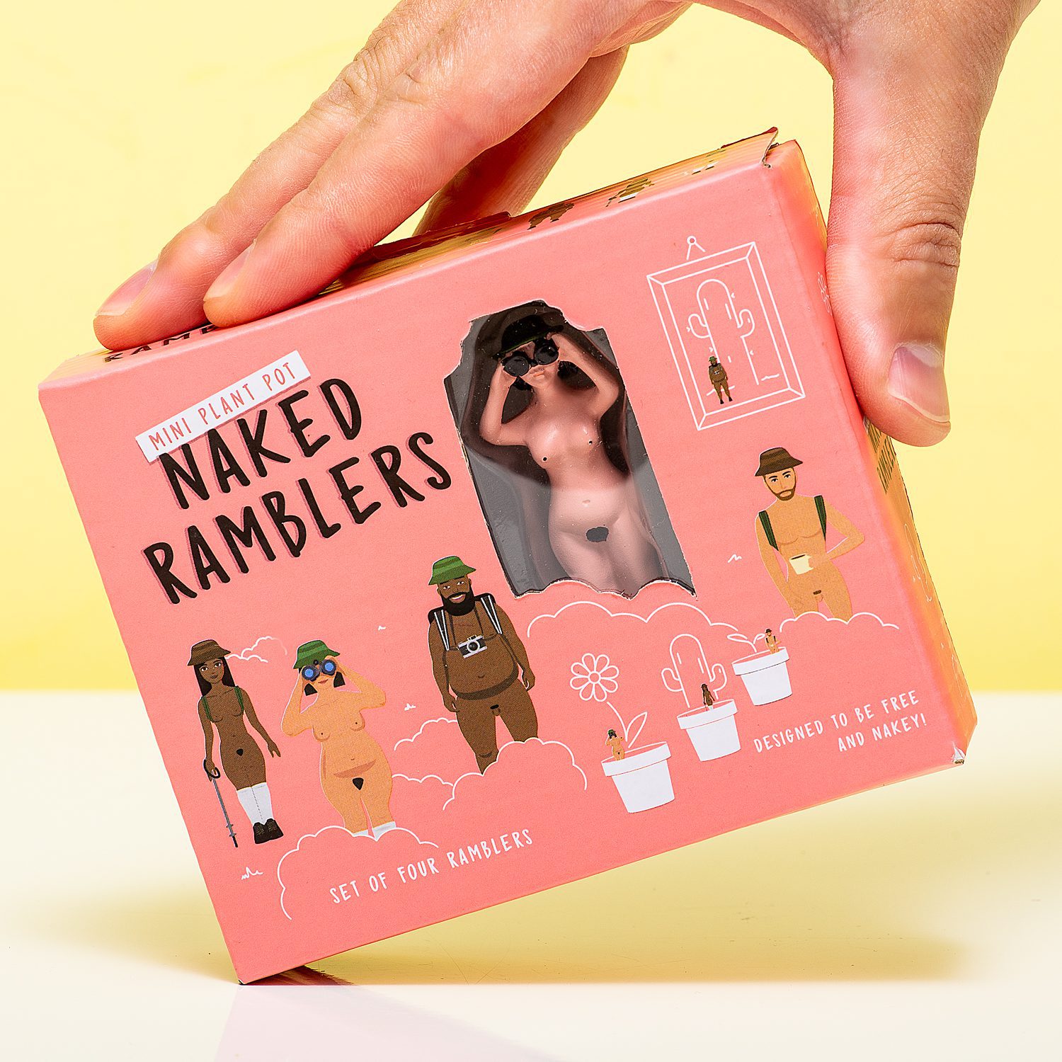 Wat staat daar nou achter je pannenkoekenplant? Het is één van de Bloempot naturisten (set van 4) van Gift Republic! Deze grappige minifiguurtjes zien eruit als naturisten. Ze zijn helemaal bloot, op een stel verstandige schoenen, hoed en verrekijker na. De set heeft vier verschillende figuurtjes: je prikt ze eenvoudig in je bloempotten om deze op te vrolijken.