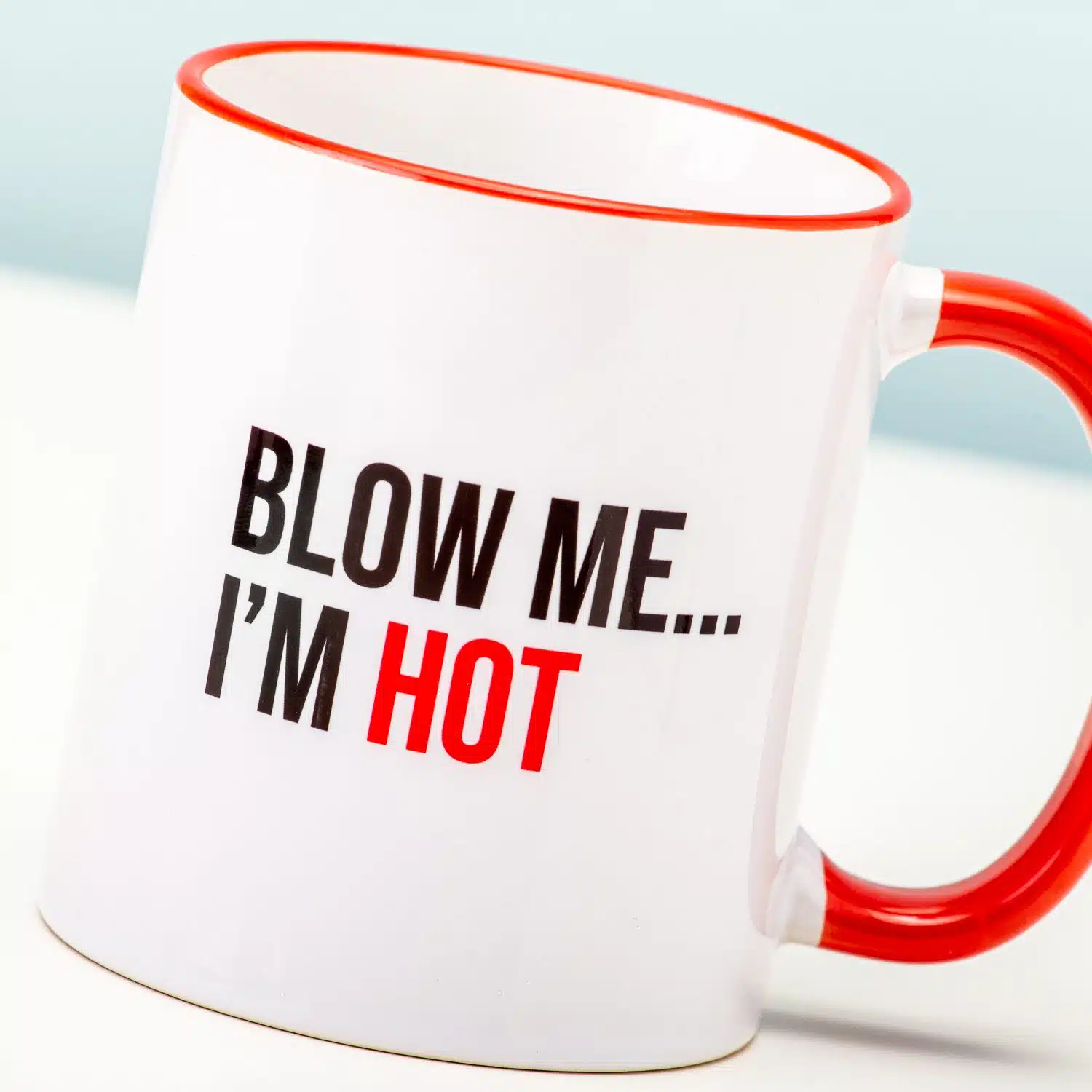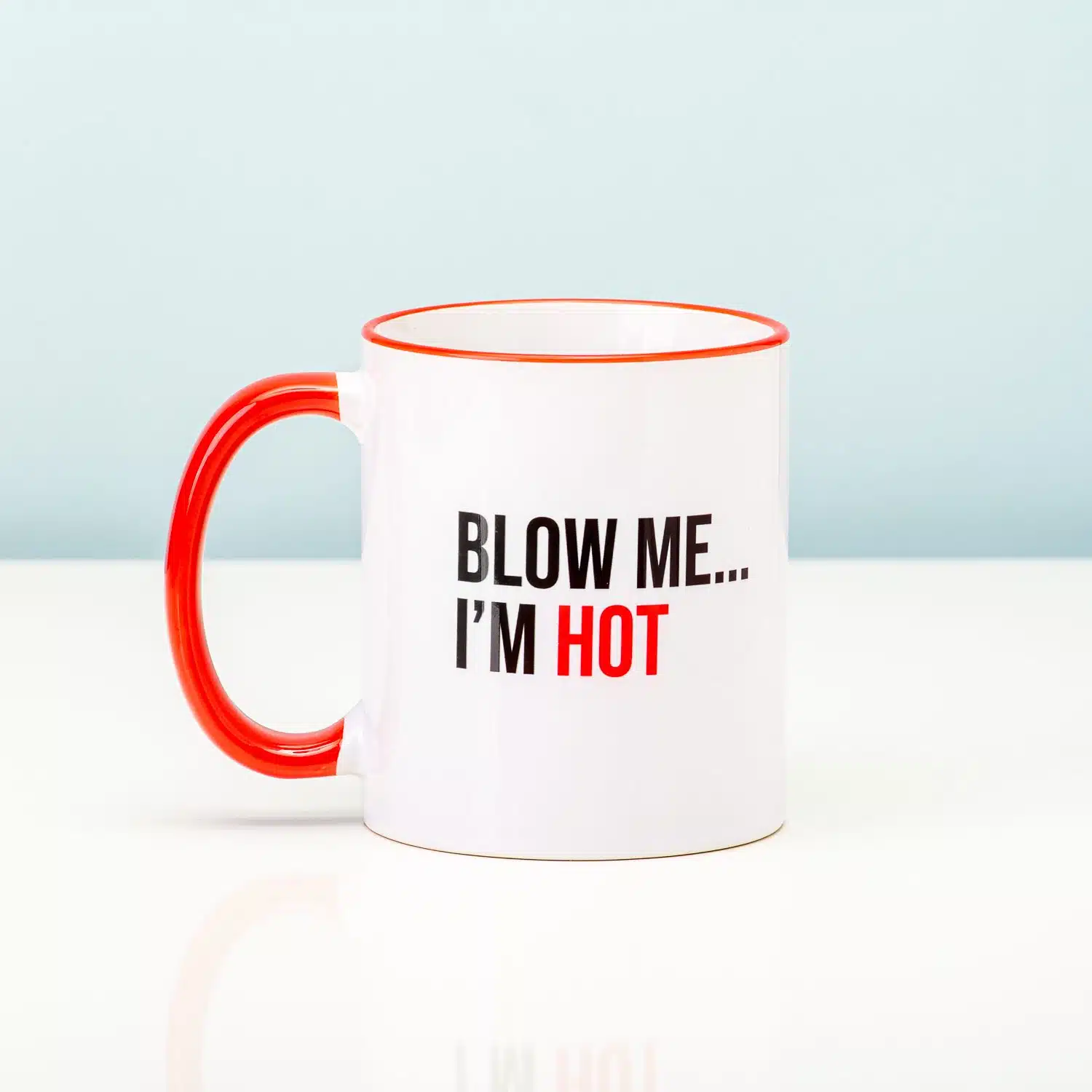 Heb jij een hele hete partner? Of een sexy collega die je wel wat beter zou willen leren kennen? Geef diegene de Blow Me… I’m Hot mok cadeau. Deze grappige beker vul je uiteraard met hete koffie of thee en heeft verder helemaal geen seksuele bijbedoeling. Toch? De mok is een hilarisch cadeautje en wie weet scoor je er wel mee!