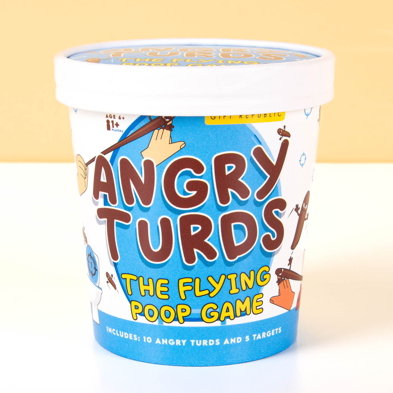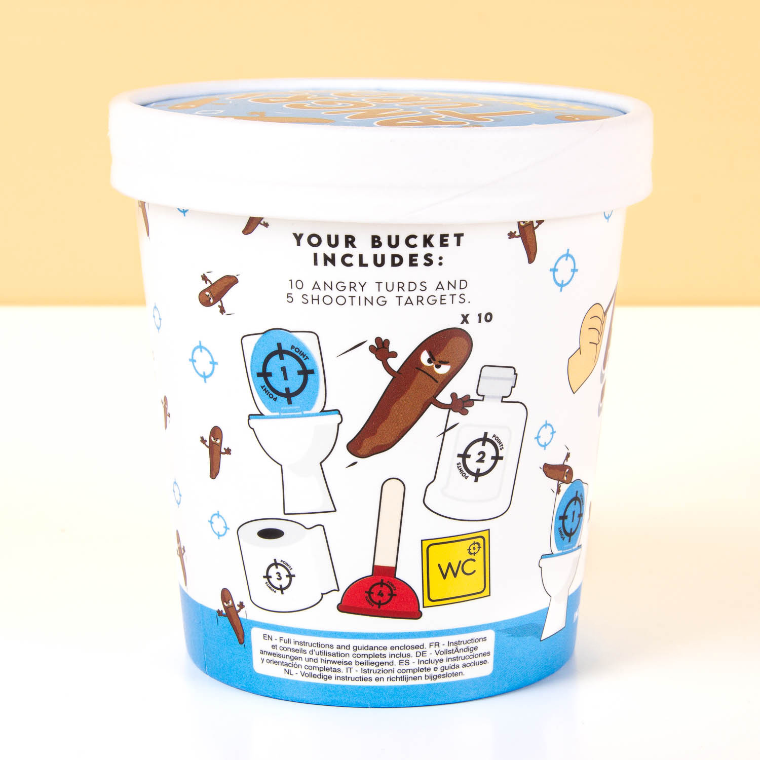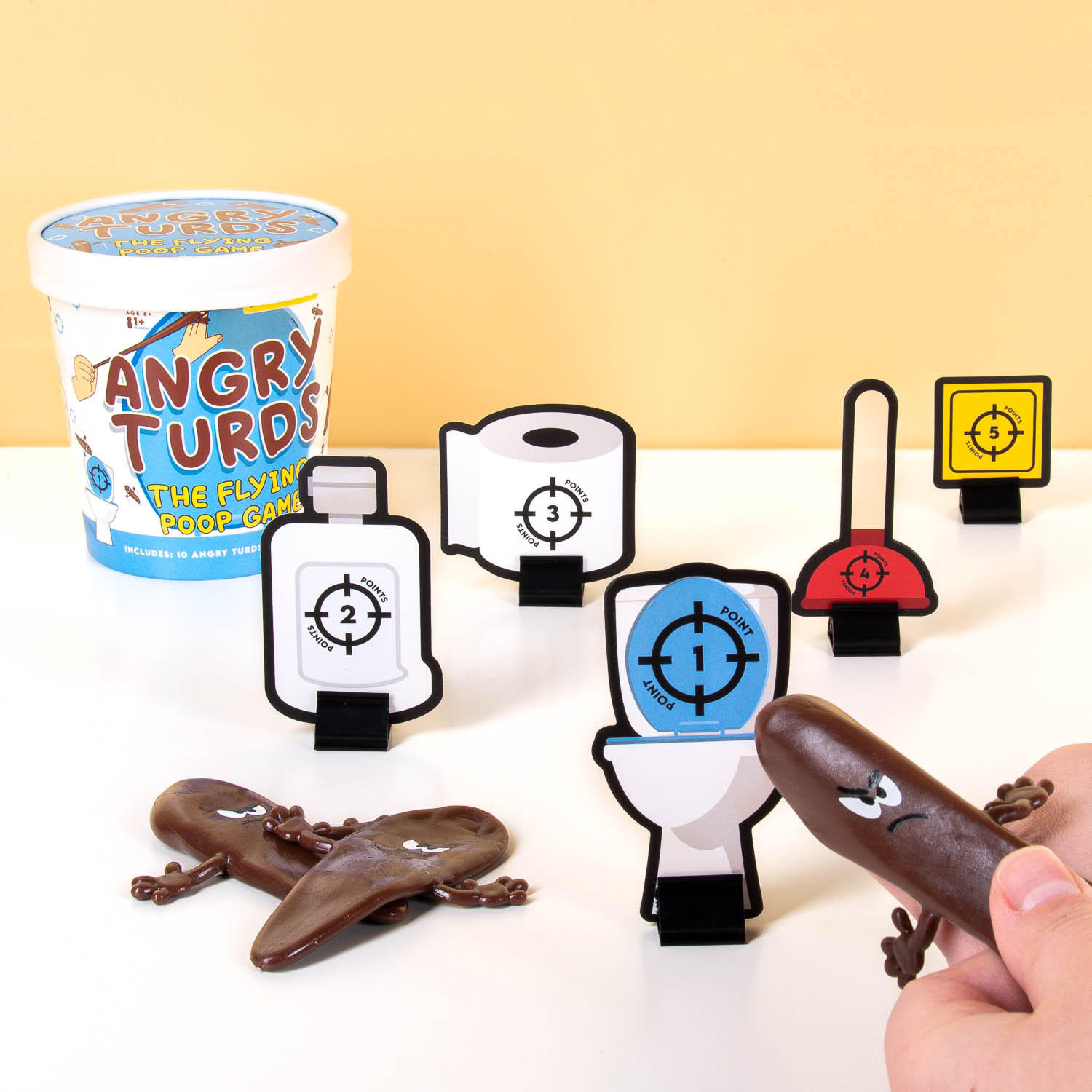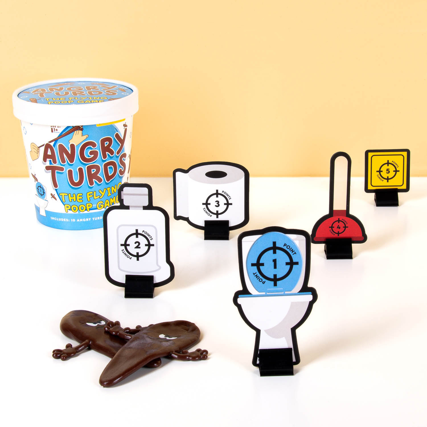 Kijk uit voor rondvliegende drollen: het Boze drollen schietspelletje van Gift Republic is het meest hilarische spel van het jaar. Rek de vliegende drol op, mik op de doelwitten en schiet raak. Met 10 rekbare drollen en 5 targets die o.a. lijken op een ontstopper en wc-pot is dit gegarandeerd een hit.