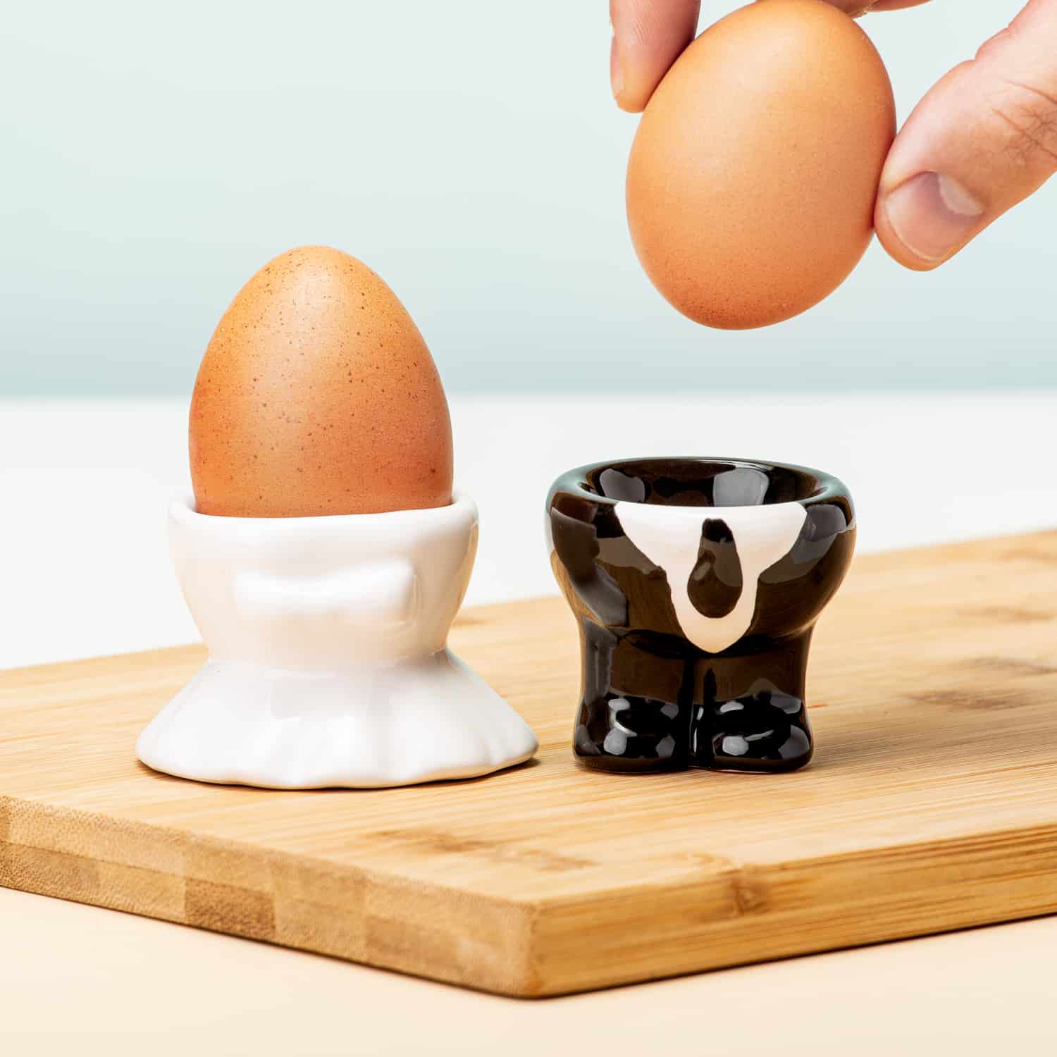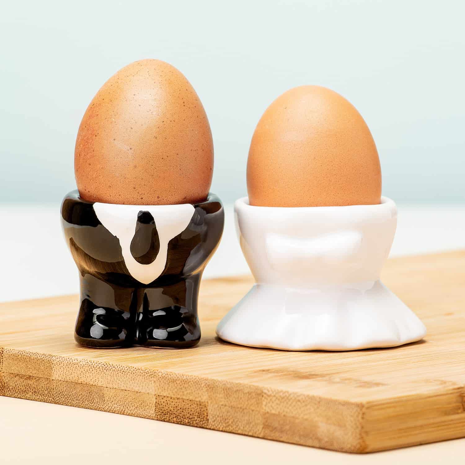 Bruidspaar eierdoppen van Invotis. Set van twee eierdopjes in de vorm van een bruid en een bruidegom. Grappige eierdoppen van keramiek, om cadeau te geven aan een bruidspaar. Zo wordt het zondagse ontbijt extra bijzonder. De Happily Married Egg Holders van Invotis hebben een buiten diameter van 6,5 centimeter en binnen diameter van 5 centimeter.