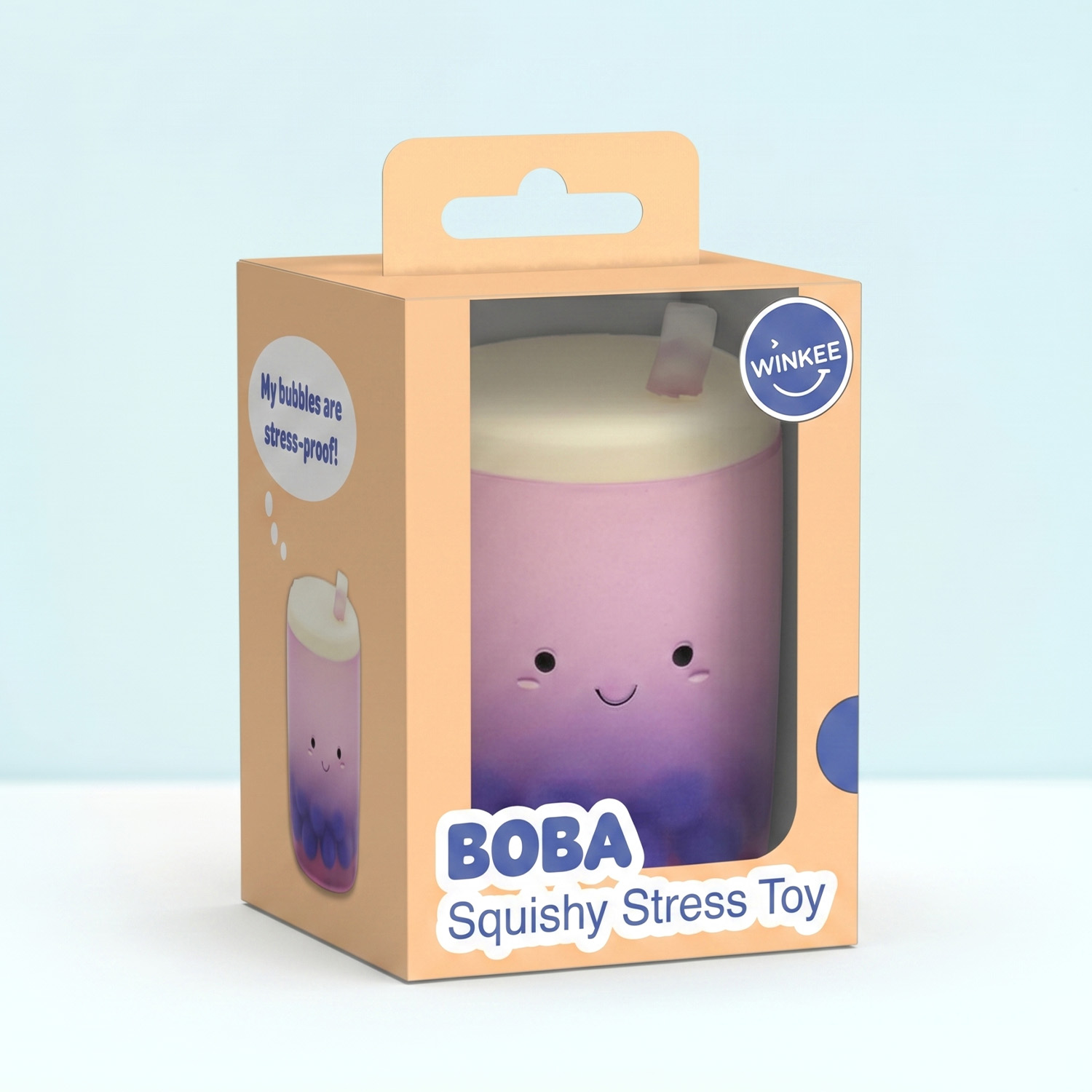 Stress? Knijp gewoon in je bubble tea. Niet in je echte natuurlijk, dan krijg je zo’n rommeltje. Gebruik de Bubble tea stressbal van Winkee! Deze stressbal ziet eruit als een echte beker bubble tea, compleet met een schattig gezichtje. Knijp erin en laat je zorgen als sneeuw voor de zon verdwijnen..