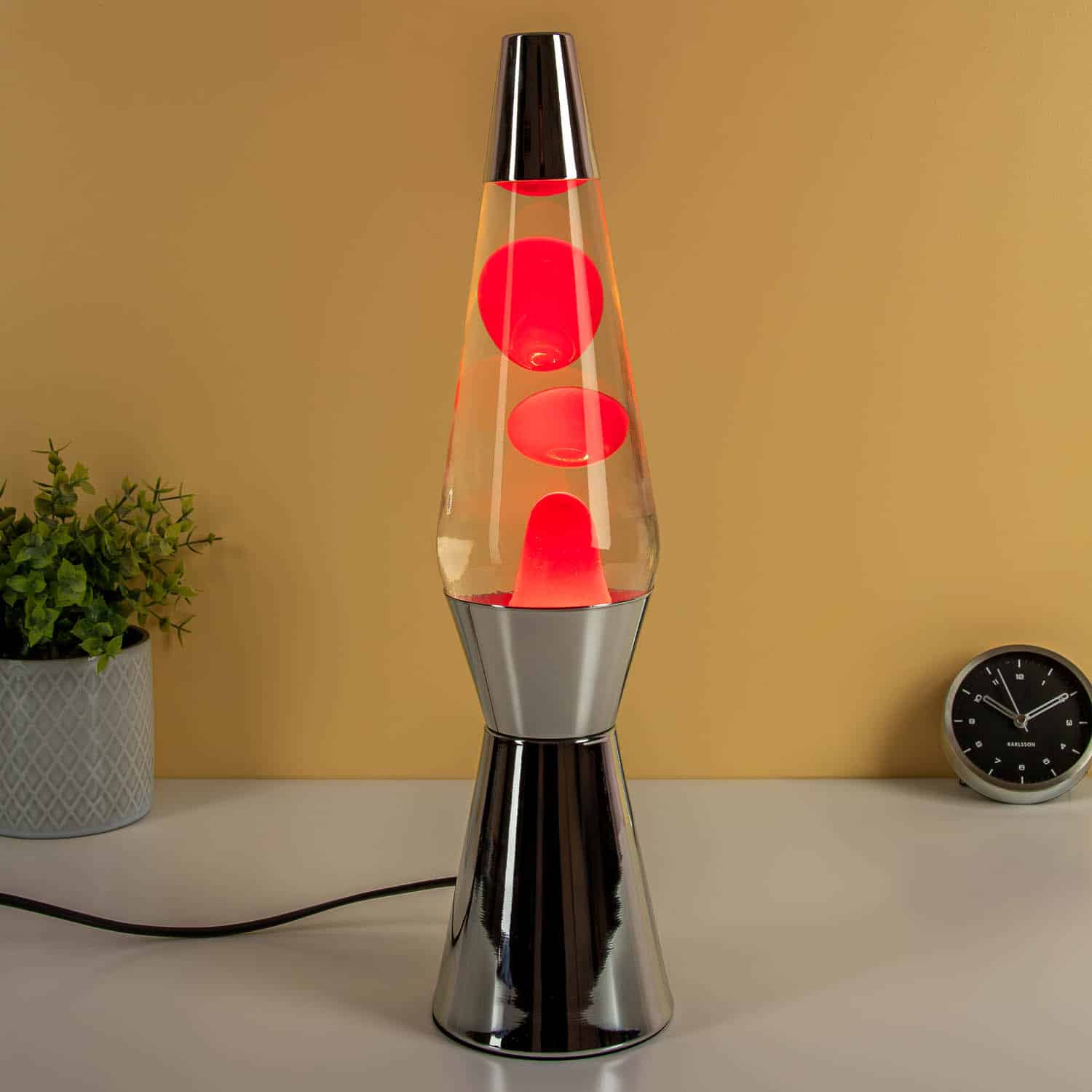 • Stoere lavalamp met zilverkleurige basis en rode lava