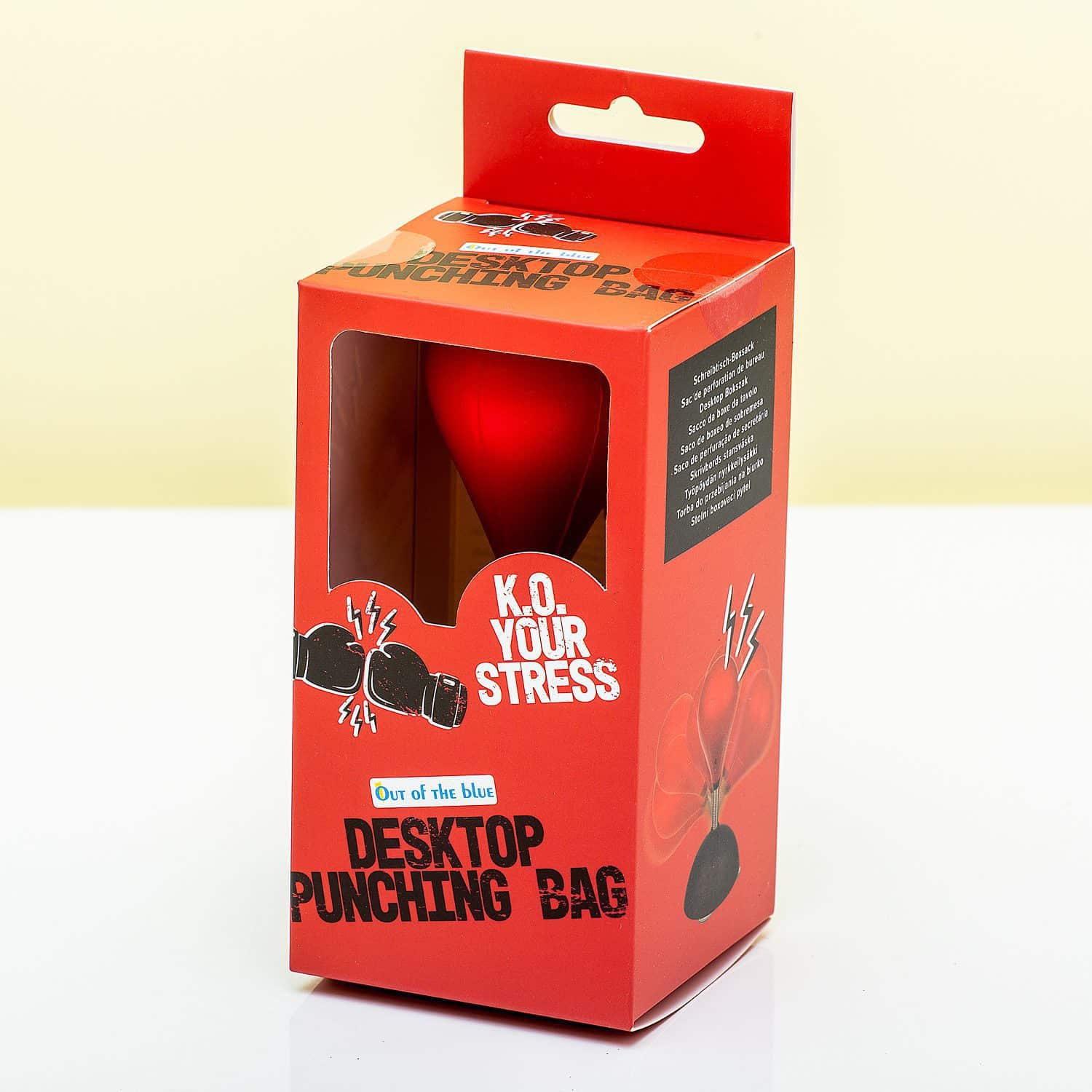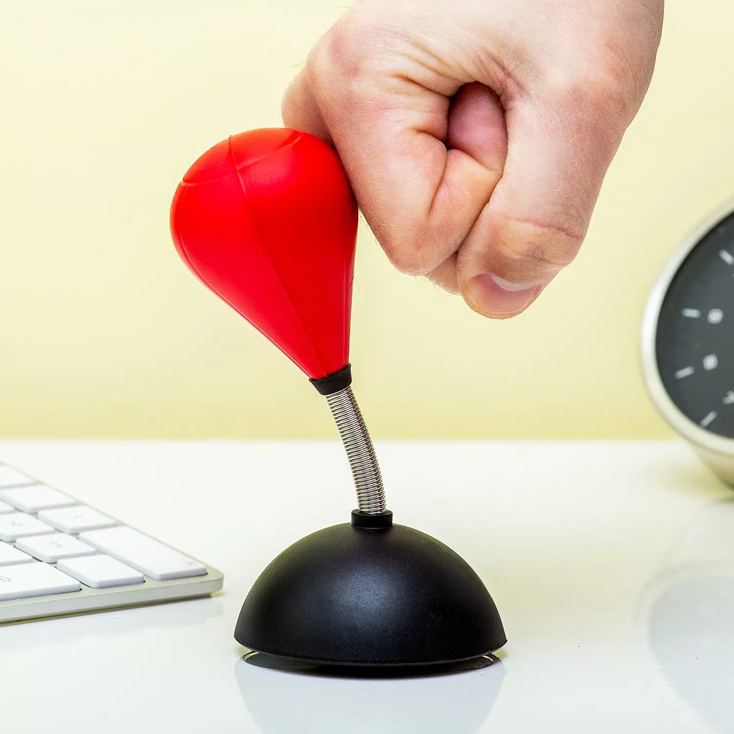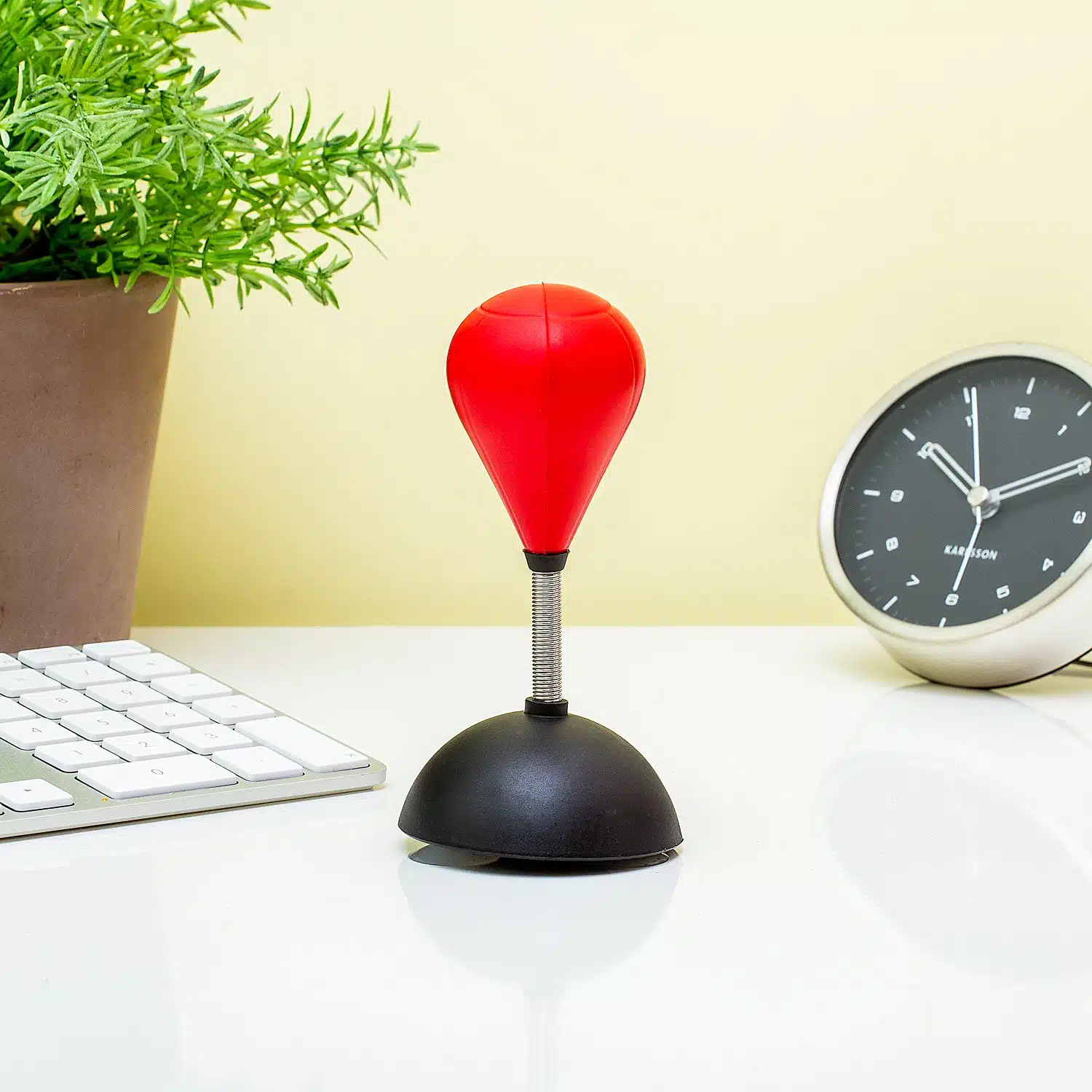 Vervelende collega’s? Een saaie klus of juist super veel werk te doen? Sla je stress of boosheid van je af met de Bureau boksbal van Out of the Blue. Deze miniatuurboksbal heeft zuignappen, waarmee je hem op een glad oppervlak kunt bevestigen. Vervolgens kun je even helemaal losgaan, tot je je stress voelt verdwijnen. Perfect voor op het werk!