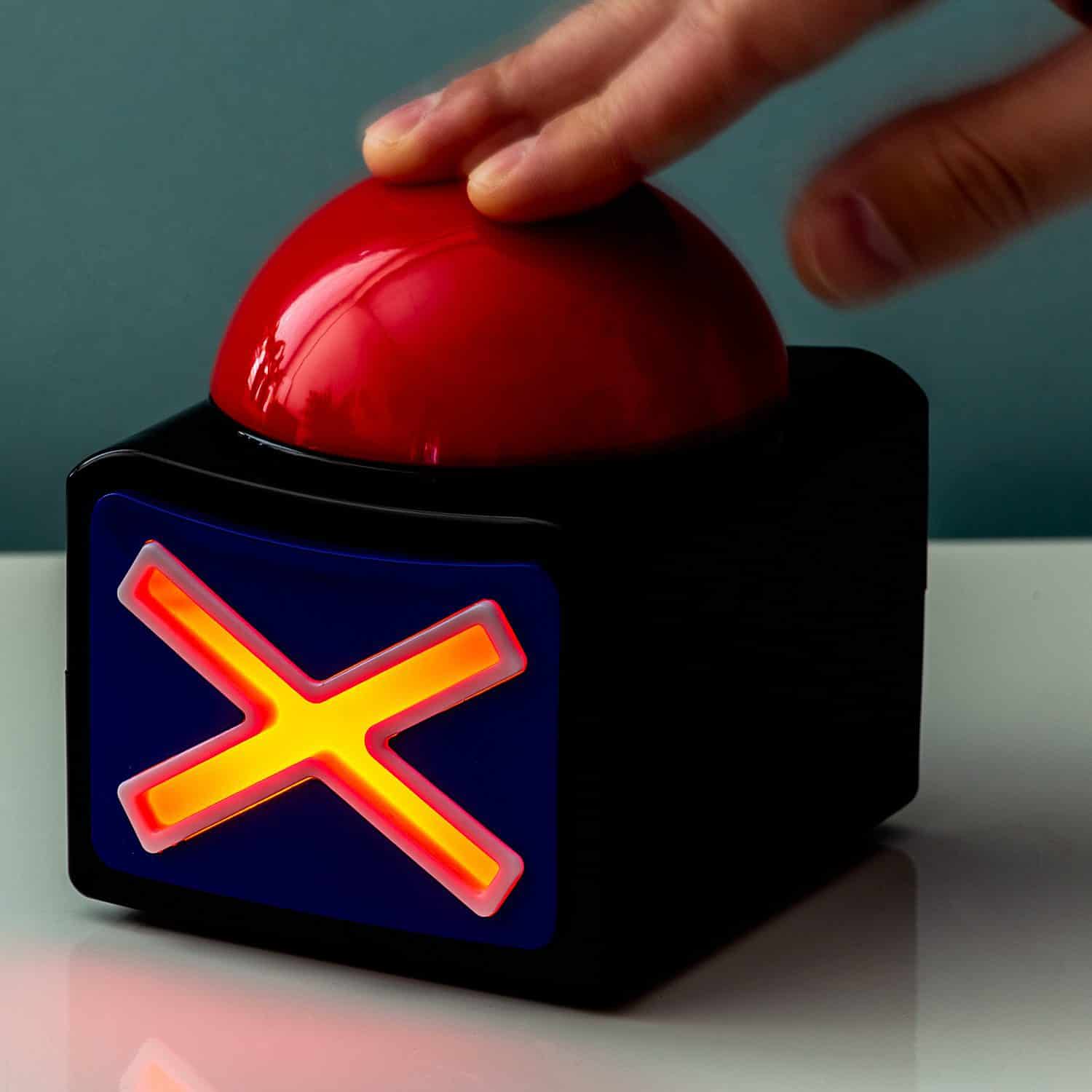 Je eigen talentenshow opvoeren – jij bent natuurlijk de jury – of gewoon laten weten dat je het ergens niet mee eens bent. Met de Buzzer met licht en geluid van Out of the Blue kan het allemaal. Deze grappige buzzer ziet eruit als één die je zou kunnen zien in een van de talentenjachten op tv. En het leuke is: hij maakt echt geluid en geeft licht. Heeft je moeder iets vies gekookt? Met de buzzer laat jij weten dat je het niks vindt. Maar dan is de kans wel aanwezig dat je de volgende dag zelf moet koken natuurlijk.