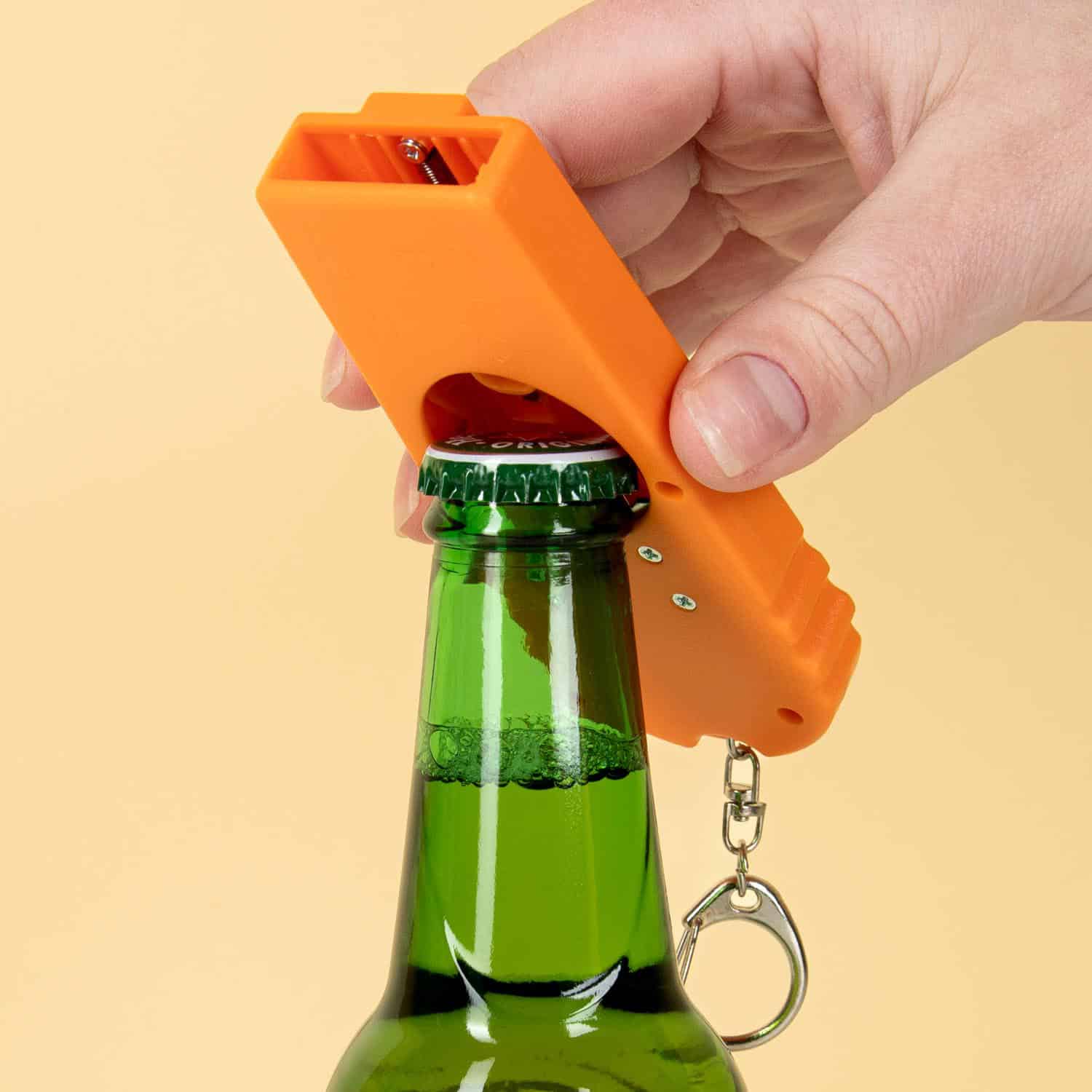 Bierdopjes wegschieten: het is bijna net zo leuk als een biertje drinken. Met de Cap Zappa flesopener schiet je bierdopjes verder weg dan ooit! Met deze handige flesopener kun je je bierdopje maar liefst vijf meter wegschieten. Met de Cap Zappa flesopener haal je eerst het bierdopje van de fles met de opener. Vervolgens trek je het hendeltje naar achteren en richt je hem op de prullenbak (of op je beste vriend). Laat het hendeltje los en de dop wordt weggeschoten. Onmisbaar tijdens borrels en vakanties met vrienden.
