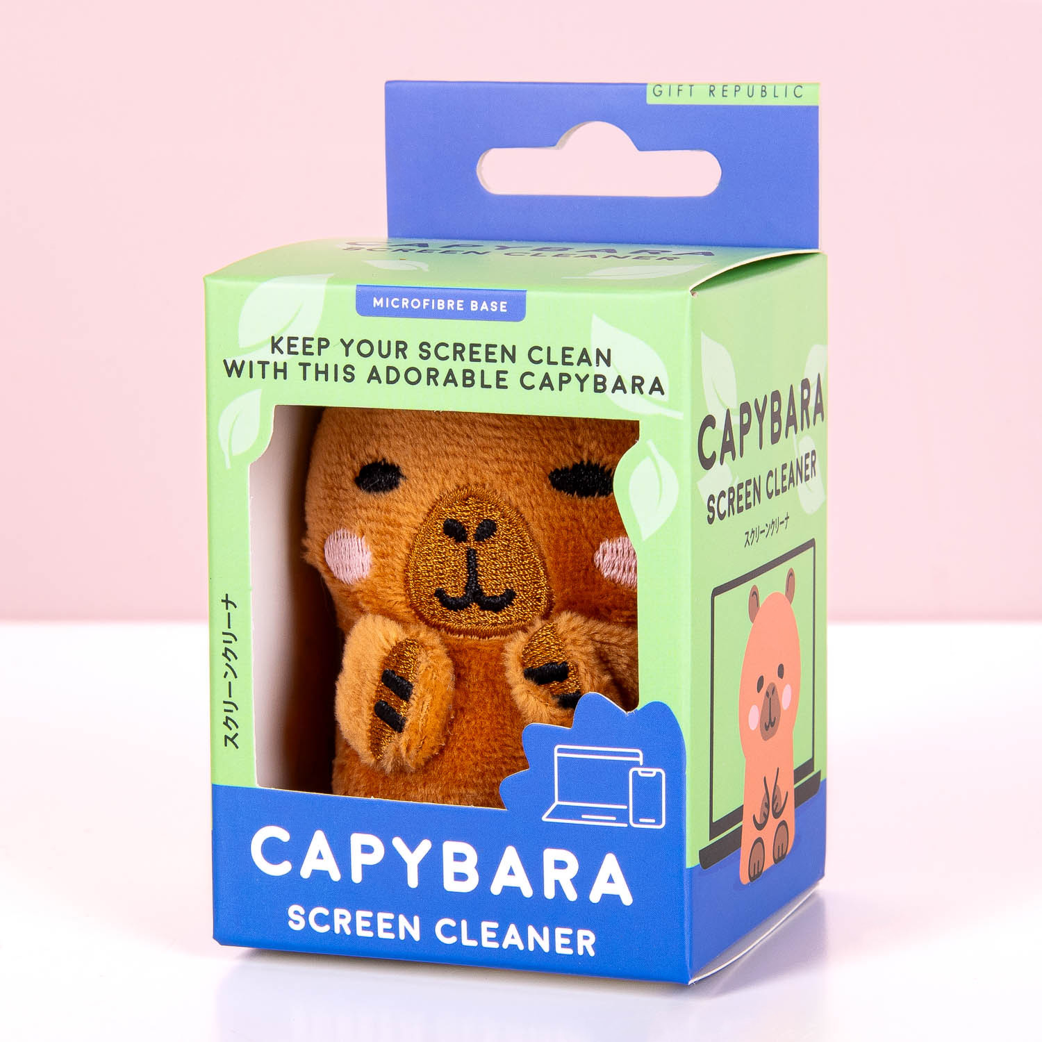 Je scherm zit weer onder de vingerafdrukken? Geen stress. Laat de capibara het regelen. De Capibara schermreiniger van Gift Republic is geïnspireerd op het meest relaxte dier ter wereld. Deze pluche vriend chillt op je bureau, maar gaat meteen aan het werk zodra je scherm er smoezelig uitziet. Met zijn ultrazachte microvezelonderkant veegt hij moeiteloos vingerafdrukken, stof en vlekken weg van je telefoon, laptop of monitor.