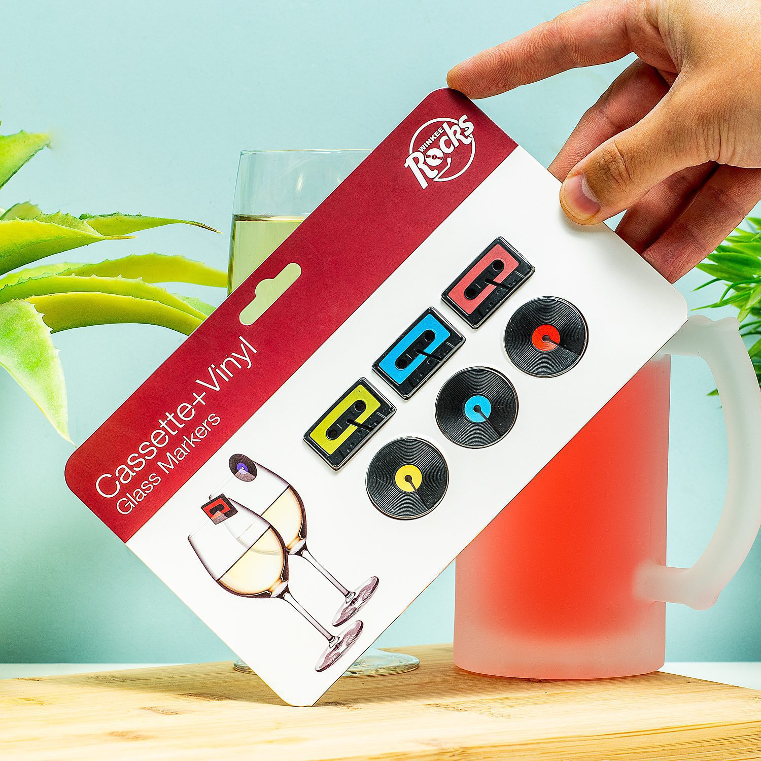 Ga lekker terug in de tijd, met de Cassette- en elpee glasmarkeerders (set van 6) van Winkee. Je zult er geen muziek uit krijgen, maar ze zorgen er wel voor dat je niet per ongeluk aan het glas van een ander zult staan lurken op een feestje. De glasmarkeerders komen in een set van zes: drie cassettebandjes en drie elpees. Perfect voor een feestje met 70s, 80s of 90s thema!