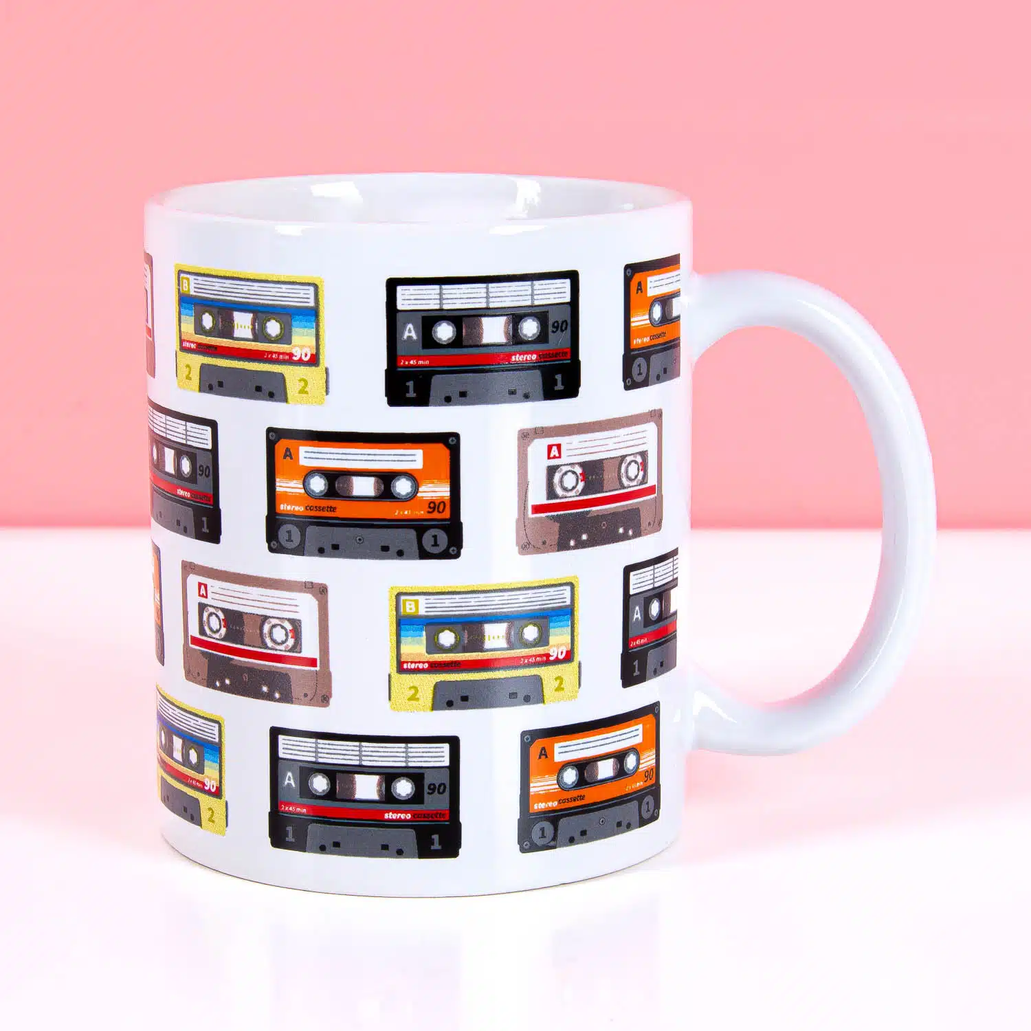 Als jij weet waarom cassettebandjes onlosmakelijk zijn verbonden met een potlood, dan roept deze Cassette mok vast een hoop herinneringen op. De beker, bedrukt met cassettebandjes, brengt je terug naar je jeugd.