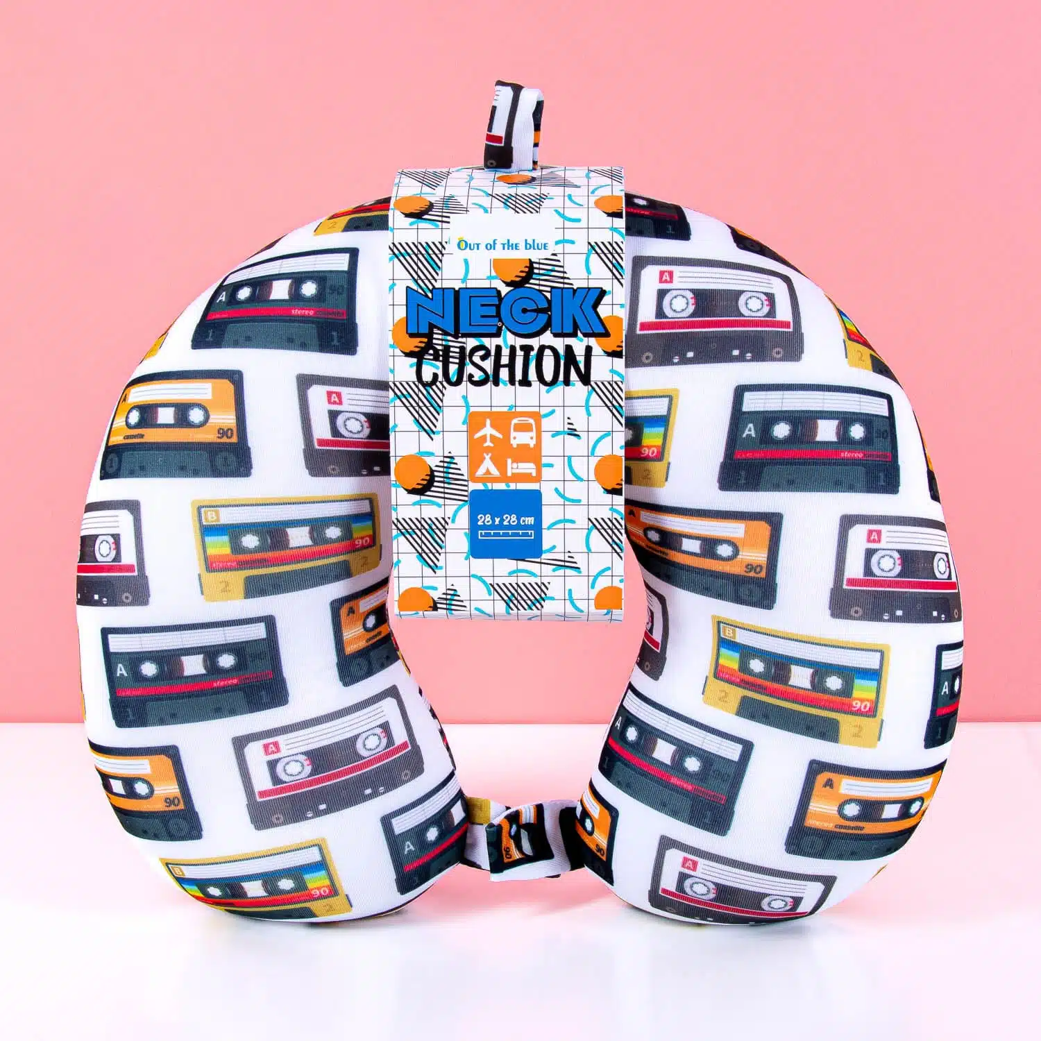 Het Cassettebandjes nekkussen geeft je steun tijdens lange reizen. Het heerlijk zachte nekkussen heeft een retro design met cassettebandjes. Comfortabel én een leuk cadeau voor nostalgische muziekliefhebbers.