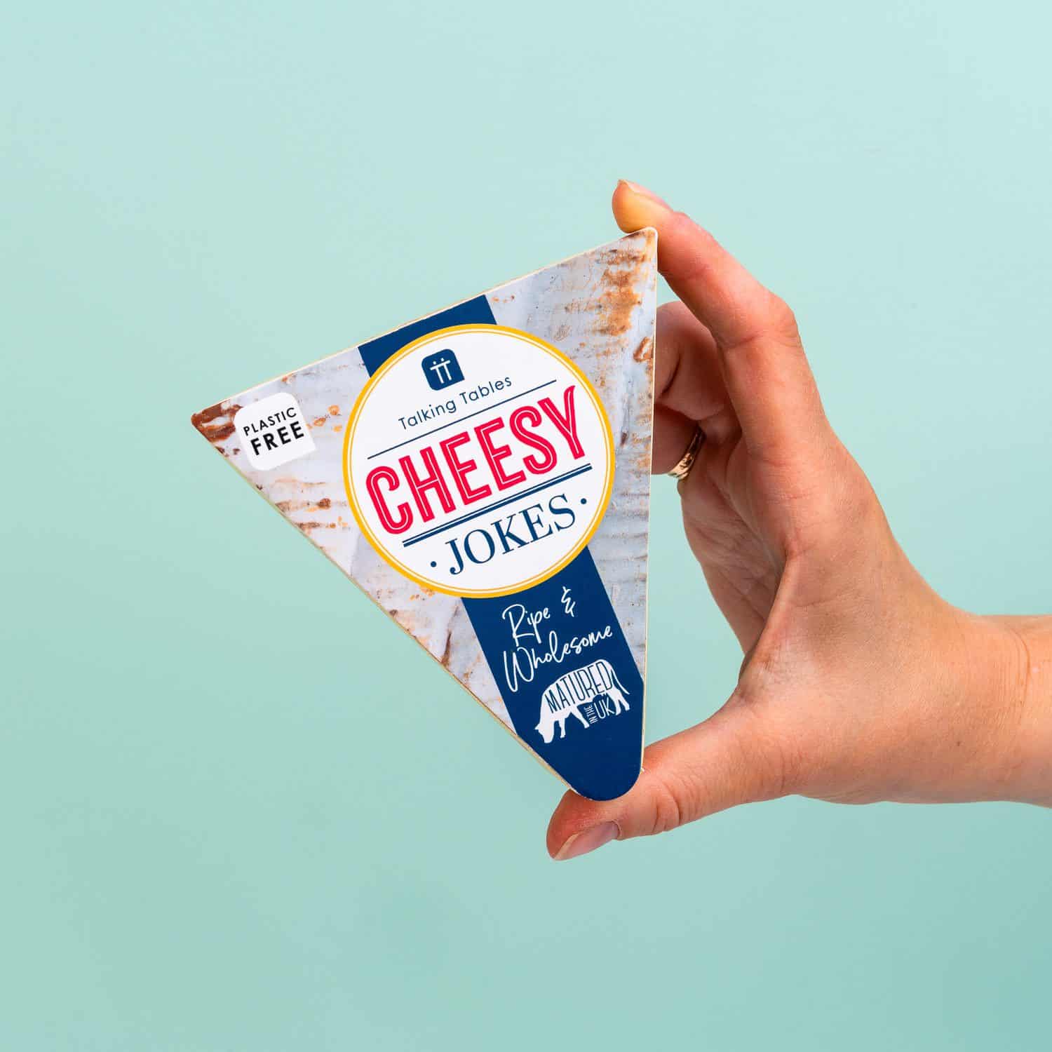 Het is de ideale combinatie na een gezellig etentje met vrienden: een kaasplankje met daarop de Cheesy Jokes van Talking Tables. Zo kunnen jullie nagenieten van een lekker stukje kaas, terwijl iemand de cheesy jokes voorleest. De grappen zitten verpakt in een doosje dat lijkt op een stuk brie en bevat grappen als: When should you keep an eye on your cheese? When it’s up to no Gouda.