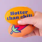 • Met de afbeelding van een chilipeper en de tekst hotter than chili