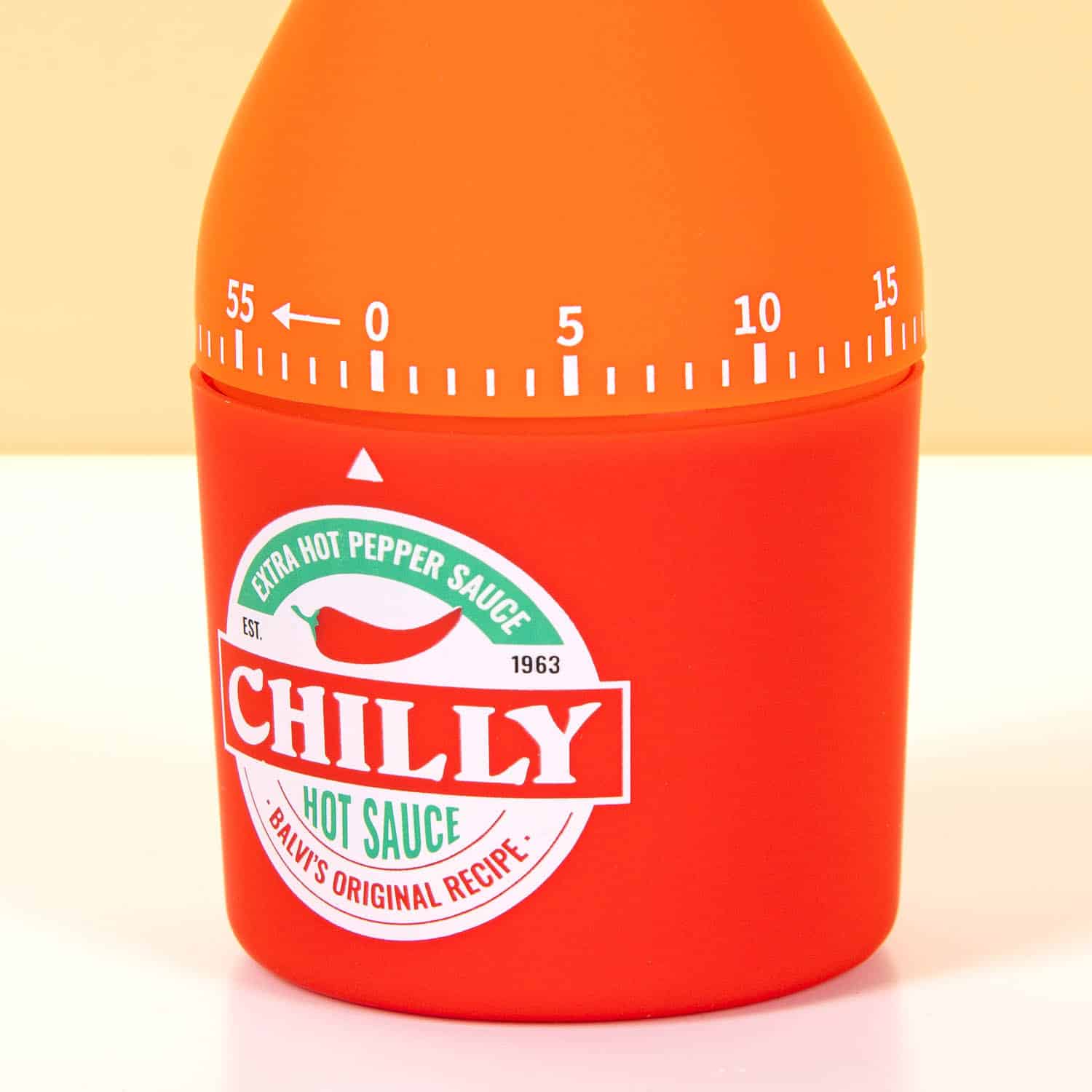 In de keuken heb je soms gewoon een beetje pit nodig. De Chilisaus kookwekker van Balvi helpt je om je gerechten én je timing op smaak te houden. Deze kookwekker ziet eruit als een flesje chilisaus, maar in plaats van pittige saus serveert hij gewoon een duidelijke planning. Stel hem in tot 60 minuten en laat hem aftellen terwijl jij roert, bakt en proeft. Als de timer afgaat, weet je dat je gerecht klaar is. Of in ieder geval dat het tijd is om te checken of alles nog niet te pittig is geworden.