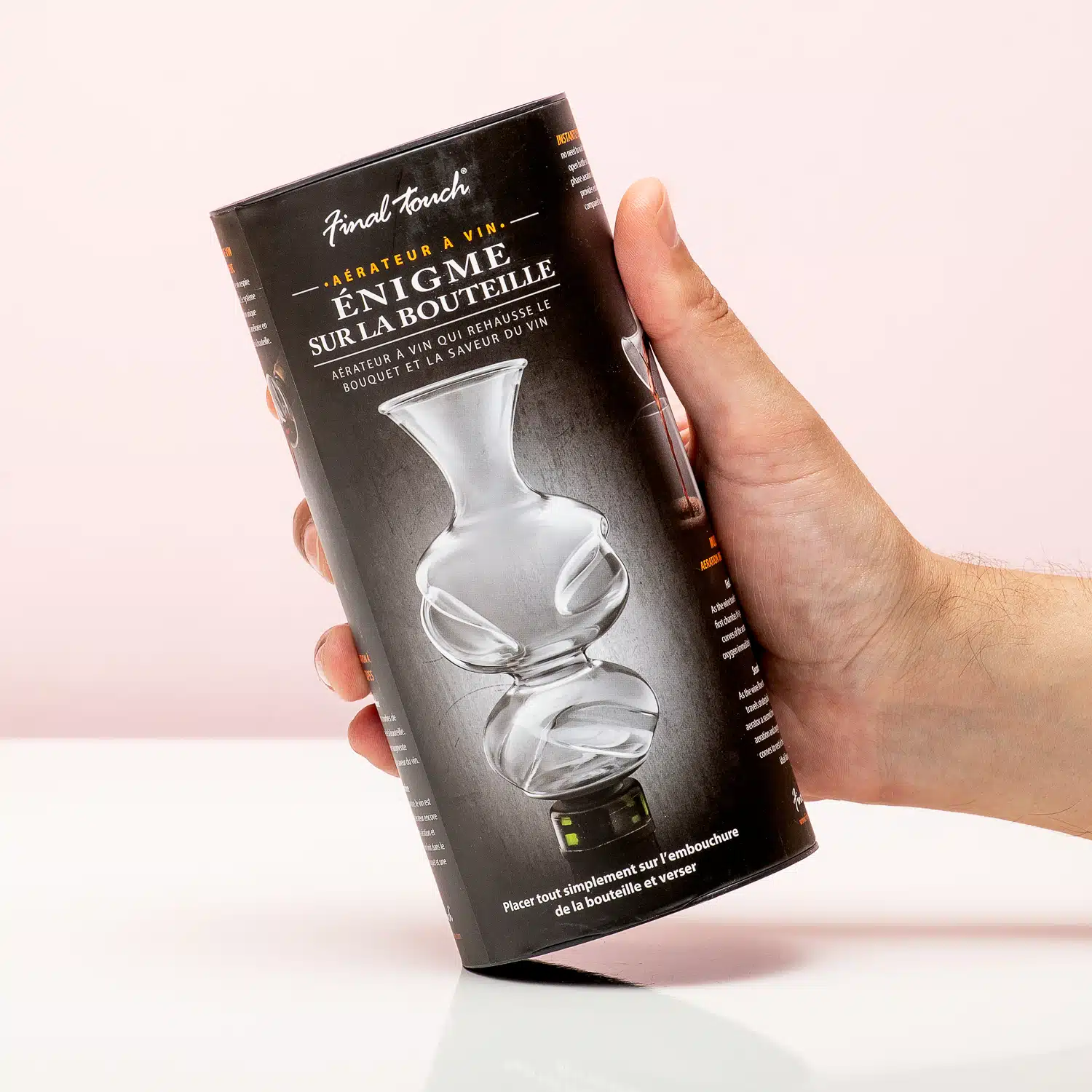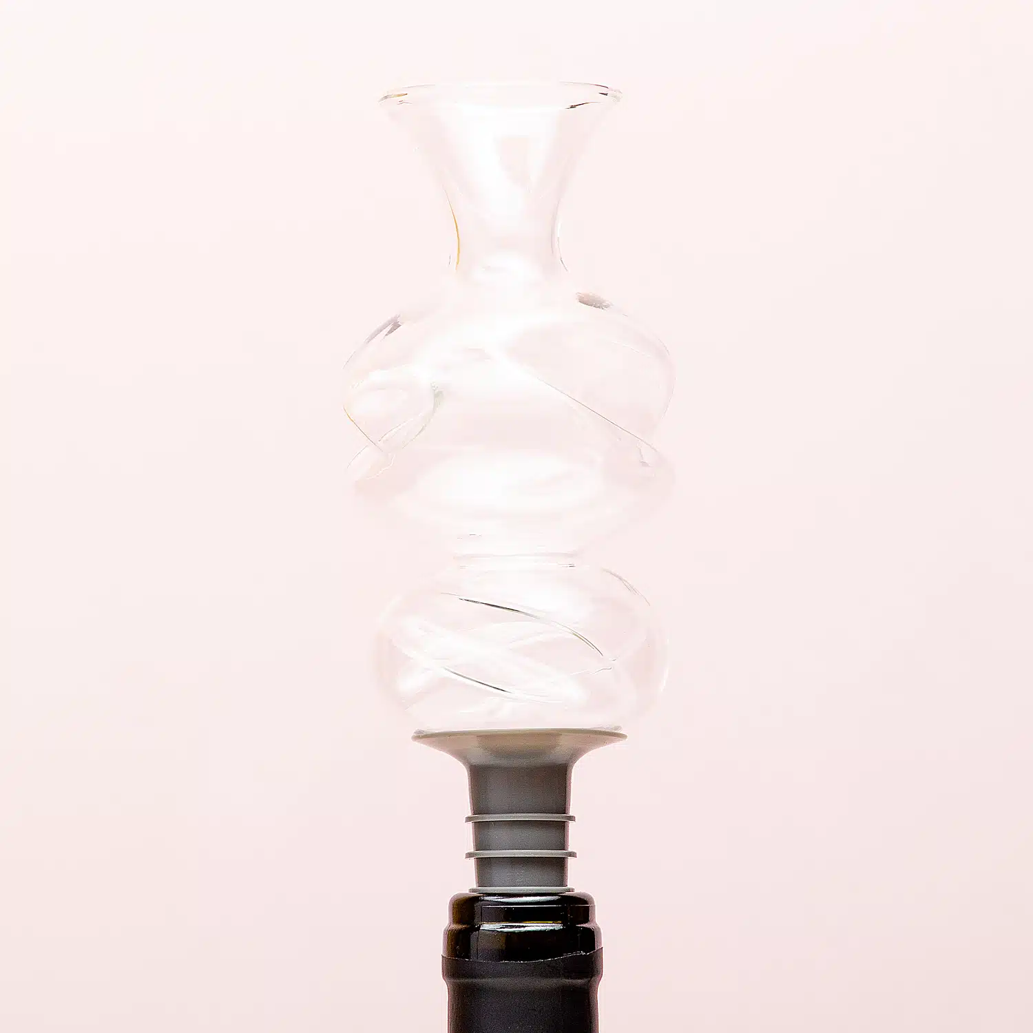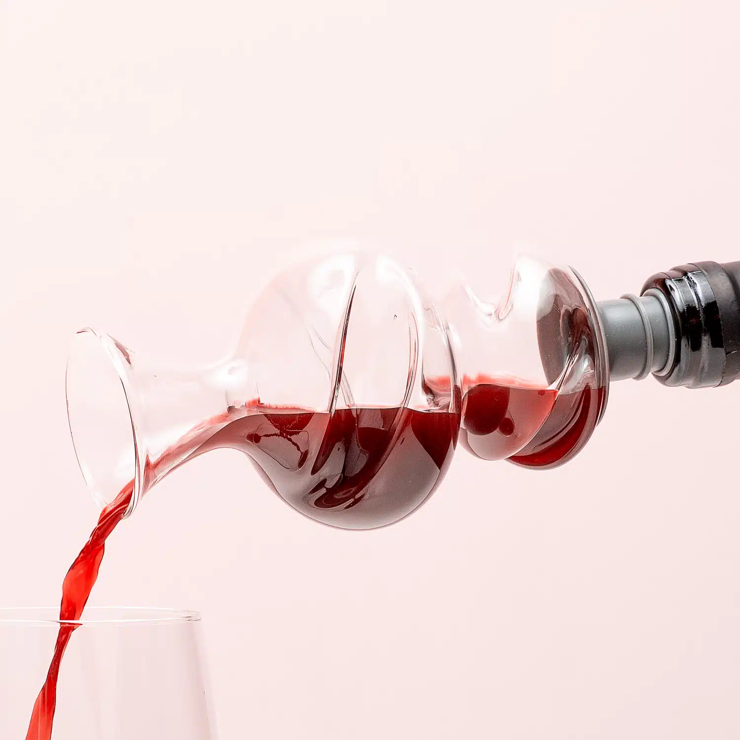 Conundrum wijn decanteerschenker. Wijn smaakt lekkerder als je hem laat luchten. In de Conundrum wijn decanteerder, die je op je wijnfles draait, krijgt de wijn de kans om het aroma en de smaak te ontwikkelen. Dit gebeurt tijdens het schenken in de twee glazen kamers. Geschikt voor de meeste wijnflessen met kurk en schroefdop. Afmeting: 6 x 6 x 15 centimeter.