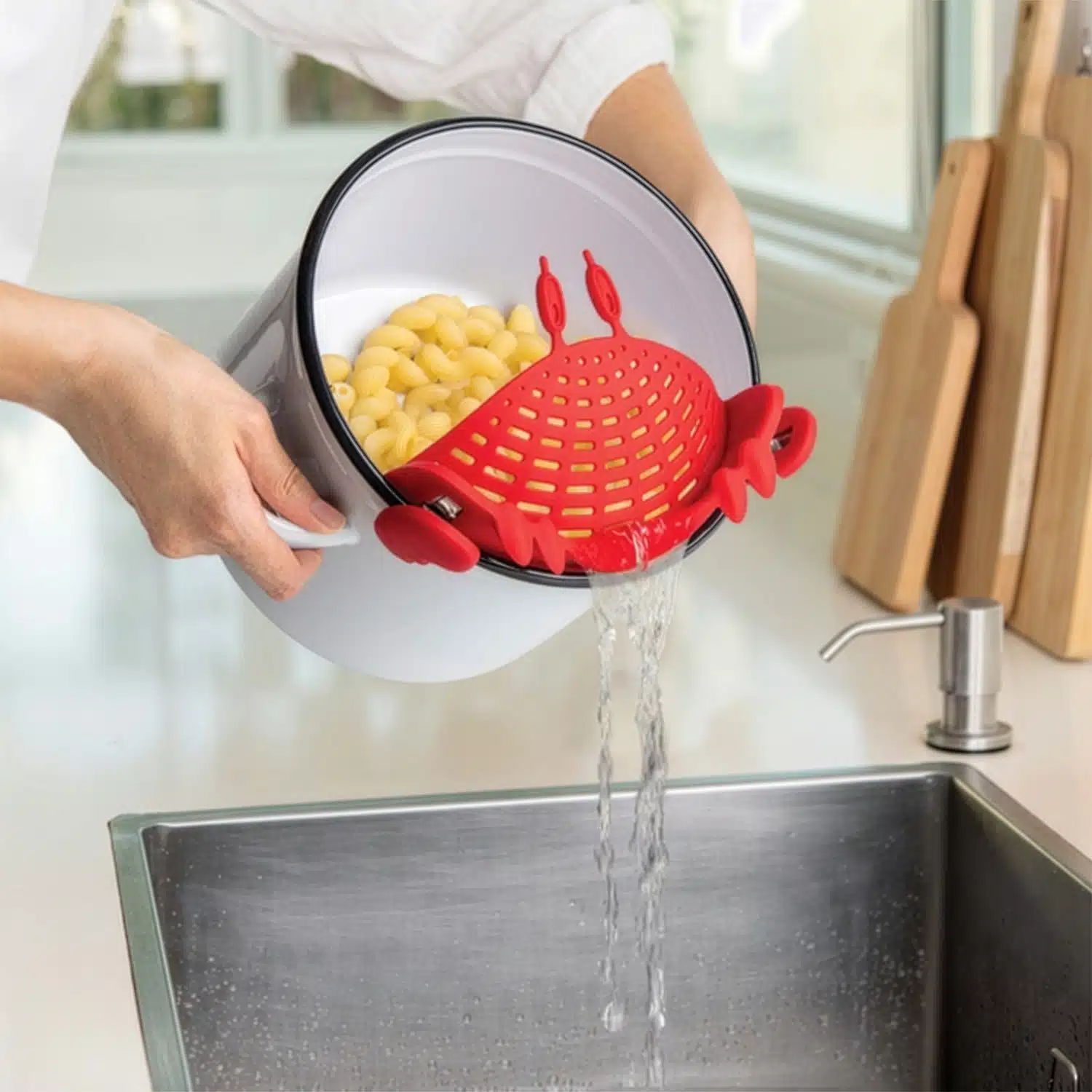 Het Crabby vergiet van Ototo heeft eindelijk z’n eigen schaartjes om zich vast te klampen aan je panrand. Deze slimme krab houdt zich vast als een zeepok aan een rots, zodat jij handsfree je pasta, groenten of aardappels kunt afgieten zonder dat je vriendin hoeft te helpen vasthouden. Geen geklieder meer met een tweede pan of een vergiet dat net iets te klein is. Crabby doet al het werk terwijl jij jezelf al mentaal een Michelinster toekent. Eindelijk koken zoals de evolutie het bedoeld heeft: met hulp van schaaldieren.
