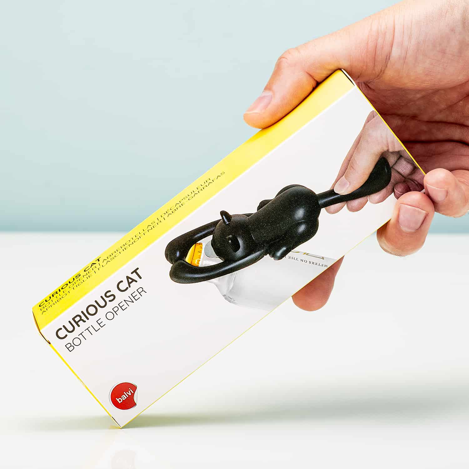 Bieropener in de vorm van een nieuwsgierige kat. De kat trekt aan het dopje van je flesje, om te ontdekken wat erin zit.