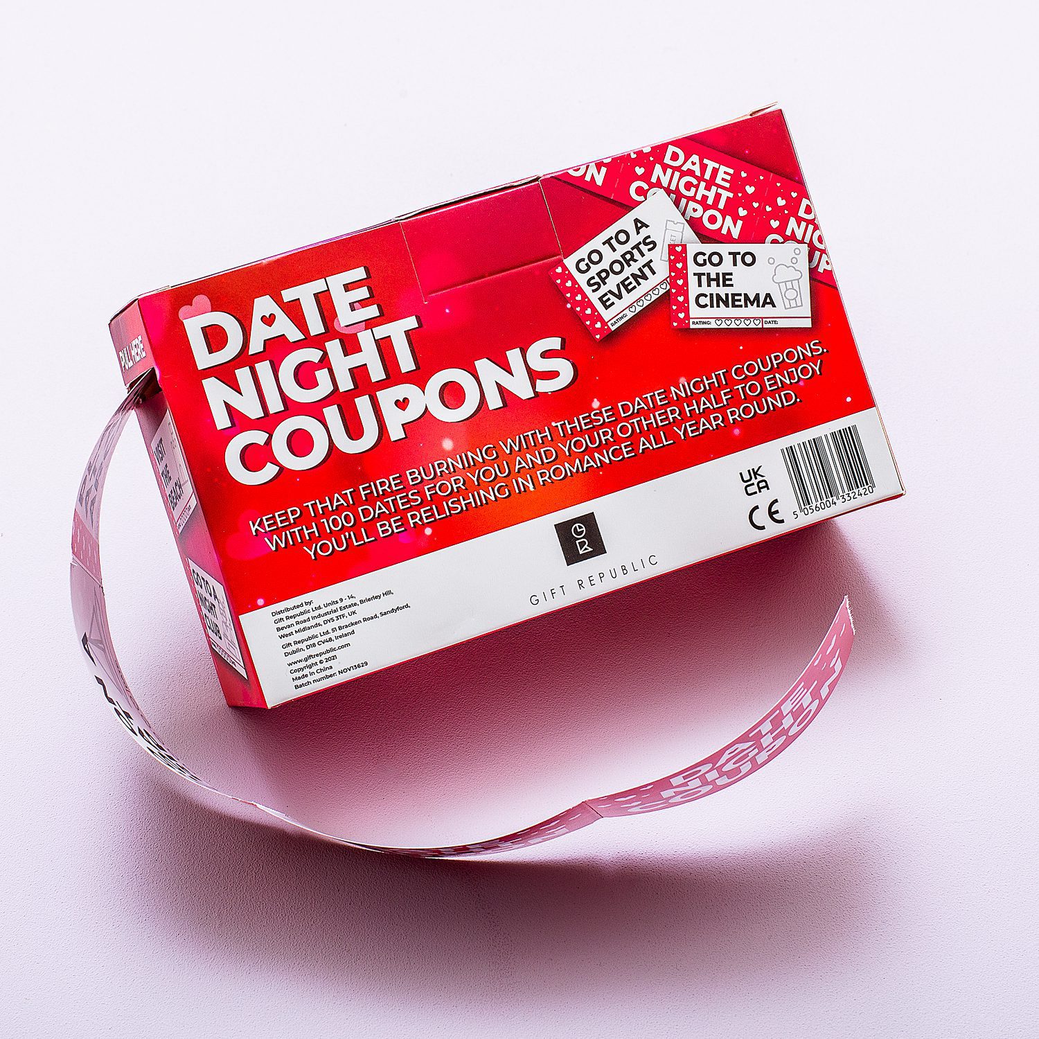 Komt een romantisch avondje bij jullie altijd neer op een etentje en naar de bios? Doe eens origineel en haal inspiratie uit de Date night coupons van Gift Republic. Met deze coupons is het elke keer een verrassing wat je gaat doen. In totaal zijn er honderd coupons met verrassende date-ideeën zoals: Visit a circus of Play at an arcade. Onderaan de coupon kun je de datum noteren en zelfs de date een cijfer geven.