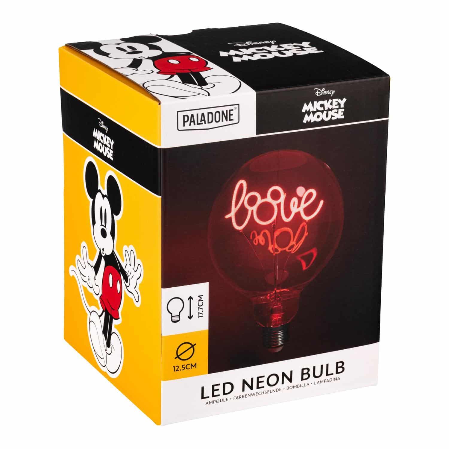 De Mickey Mouse ledlamp (E27 fitting) van Disney maakt je interieur vrolijk en sfeervol. Het filament vormt het woord Love, waarbij de ‘O’ de iconische Mickey-oortjes is. De lamp geeft rood licht en past in een standaard E27 fitting.