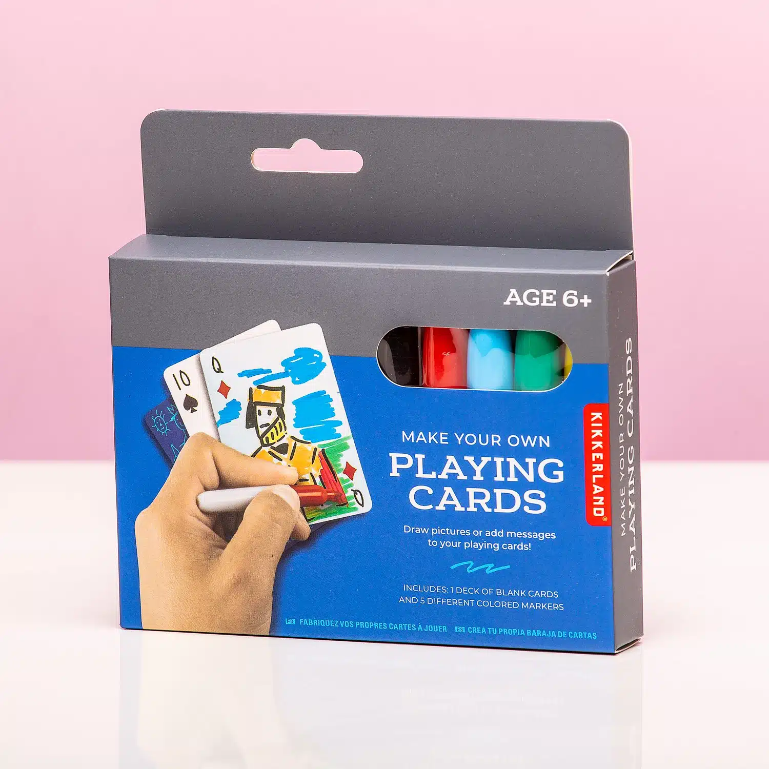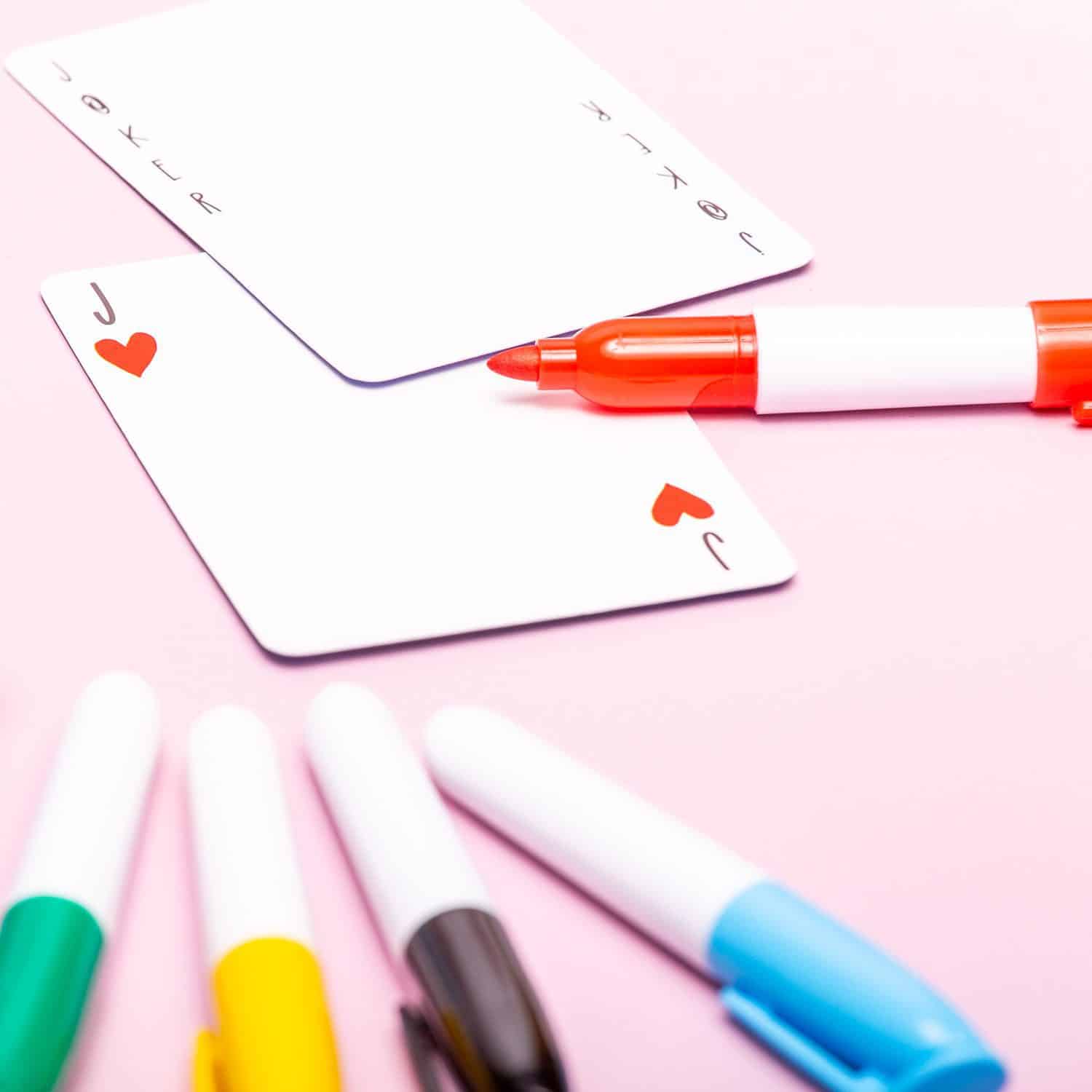 Heb jij een creatieve insteek? Verras je vrienden dan door tijdens een spelletjesavond het DIY kaartspel van Kikkerland op tafel te toveren. Deze set met speelkaarten ontwerp je helemaal zelf. Bij de kaarten ontvang je een rode, blauwe, gele, groene en zwarte stift, waarmee jij je kaartspel kunt ontwerpen. Het kaartspel heeft wel alle waardes die bij een kaartspel horen in de hoeken staan: zo weet je zeker dat je straks geen kaarten mist.