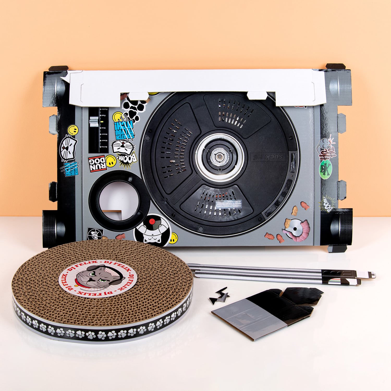 Jouw kat verdient het beste en je gordijnen ook. Geef je kat de DJ krastafel voor katten van Suck UK cadeau en je hebt een win-win situatie. Je kat heeft namelijk iets te spelen en je interieur blijft vrij van krassen. Deze grappige krabtafel ziet eruit als een draaitafel van een DJ. De elpee kan echt draaien en ook de arm is verstelbaar. Met deze krabpaal blijven de nagels van je kat kort en gezond.